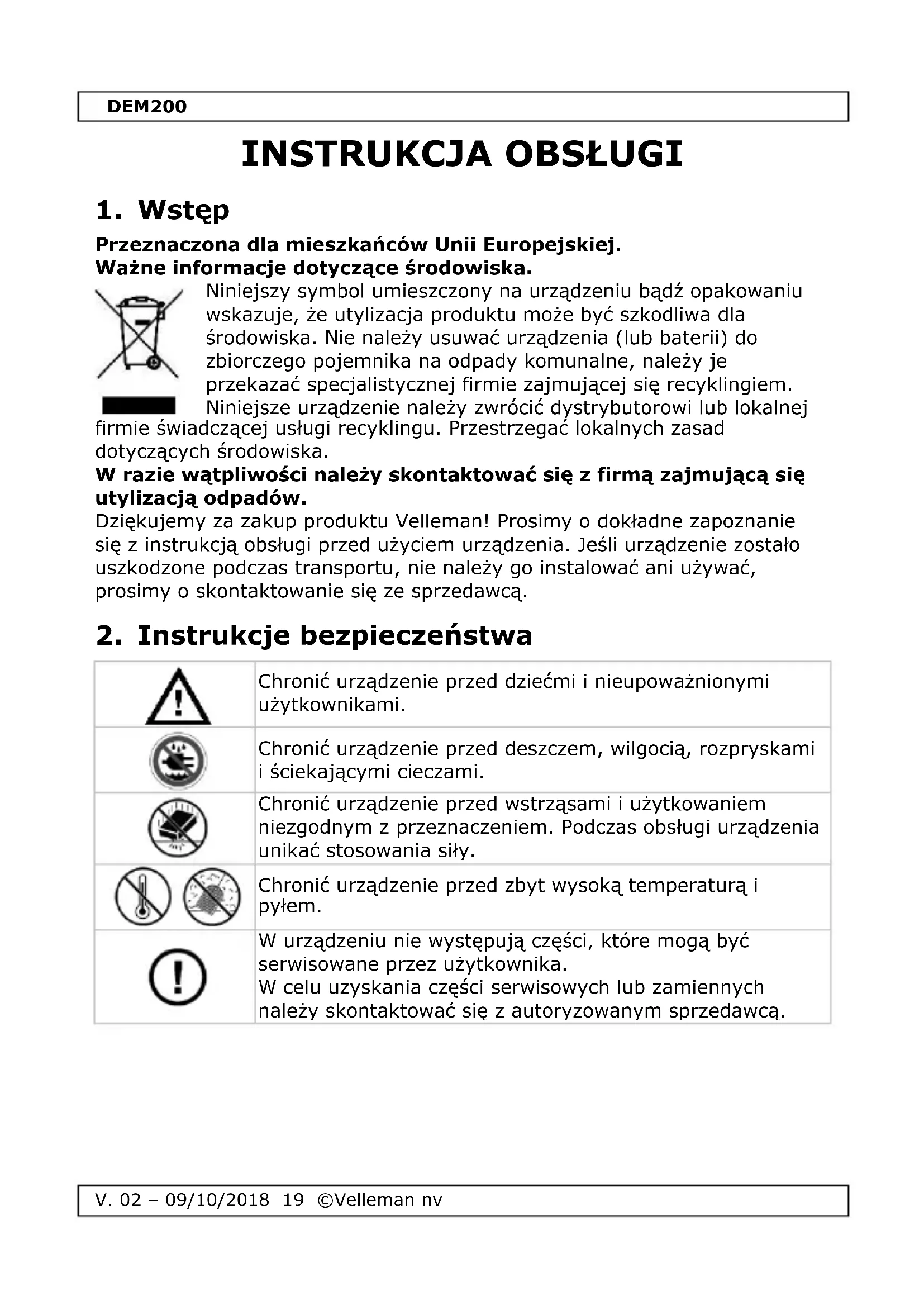 INSTRUKCJA OBSŁUGI DEM200 VELLEMAN