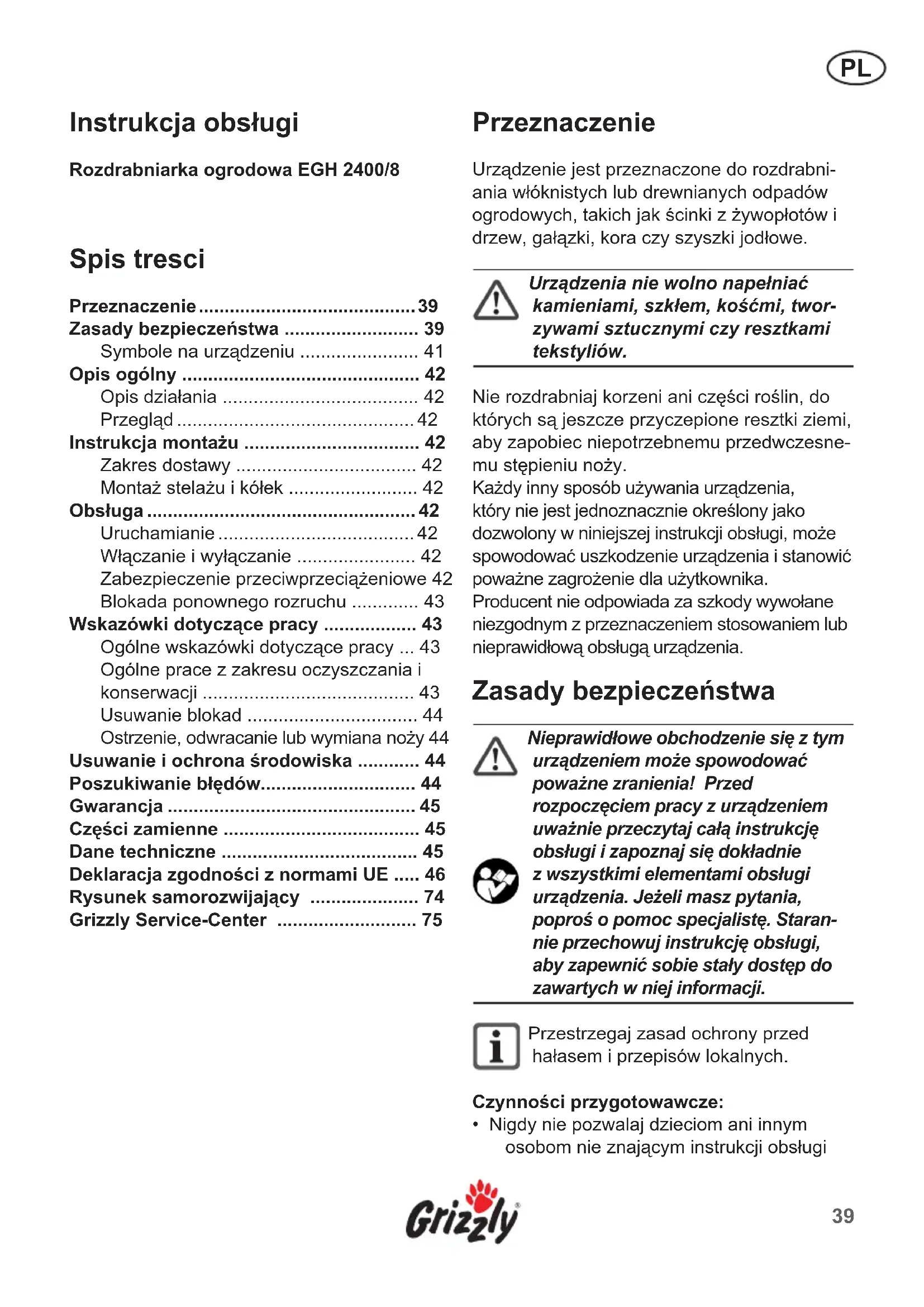 EGH 24008 - Rębak mechaniczny Grizzly - Bezpłatna instrukcja obsługi