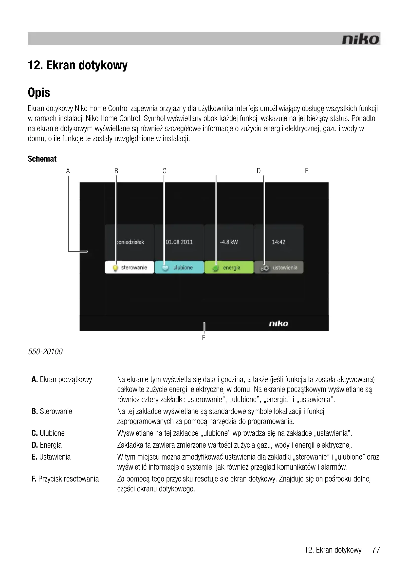 A B C D E boniedziałek 01.08.2011 -4.8 kW 14:42 sterowanie ulubione energia ustawienia niko F550-20100