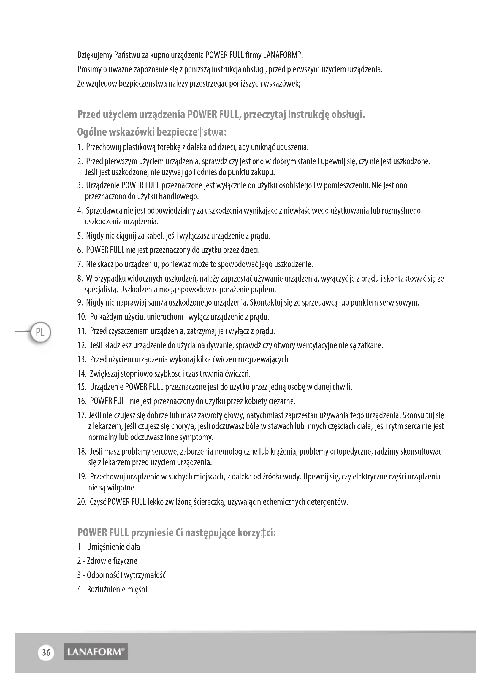 Znajdź bezpłatnie instrukcję urządzenia Power Full LANAFORM w formacie PDF.