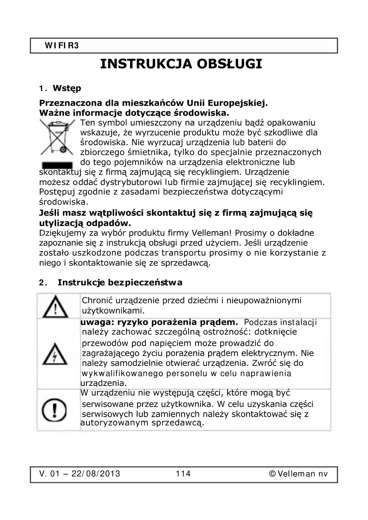 INSTRUKCJA OBSŁUGI WIFIR3 VELLEMAN