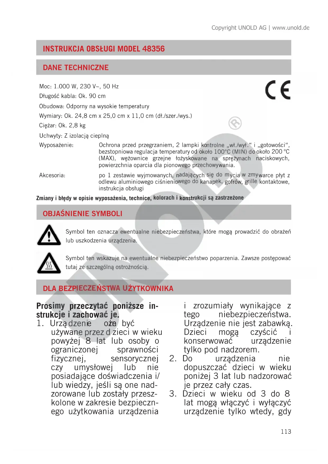 Znajdź bezpłatnie instrukcję urządzenia 48356 UNOLD w formacie PDF.