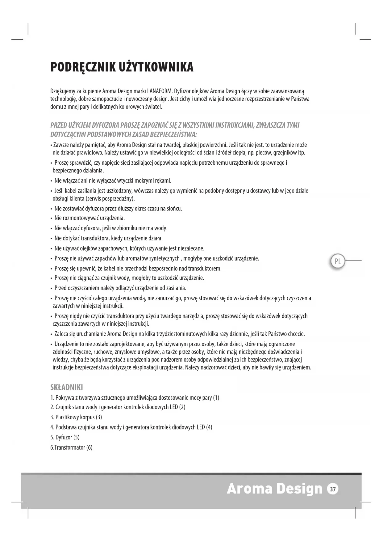 INSTRUKCJA OBSŁUGI Aroma Design LANAFORM