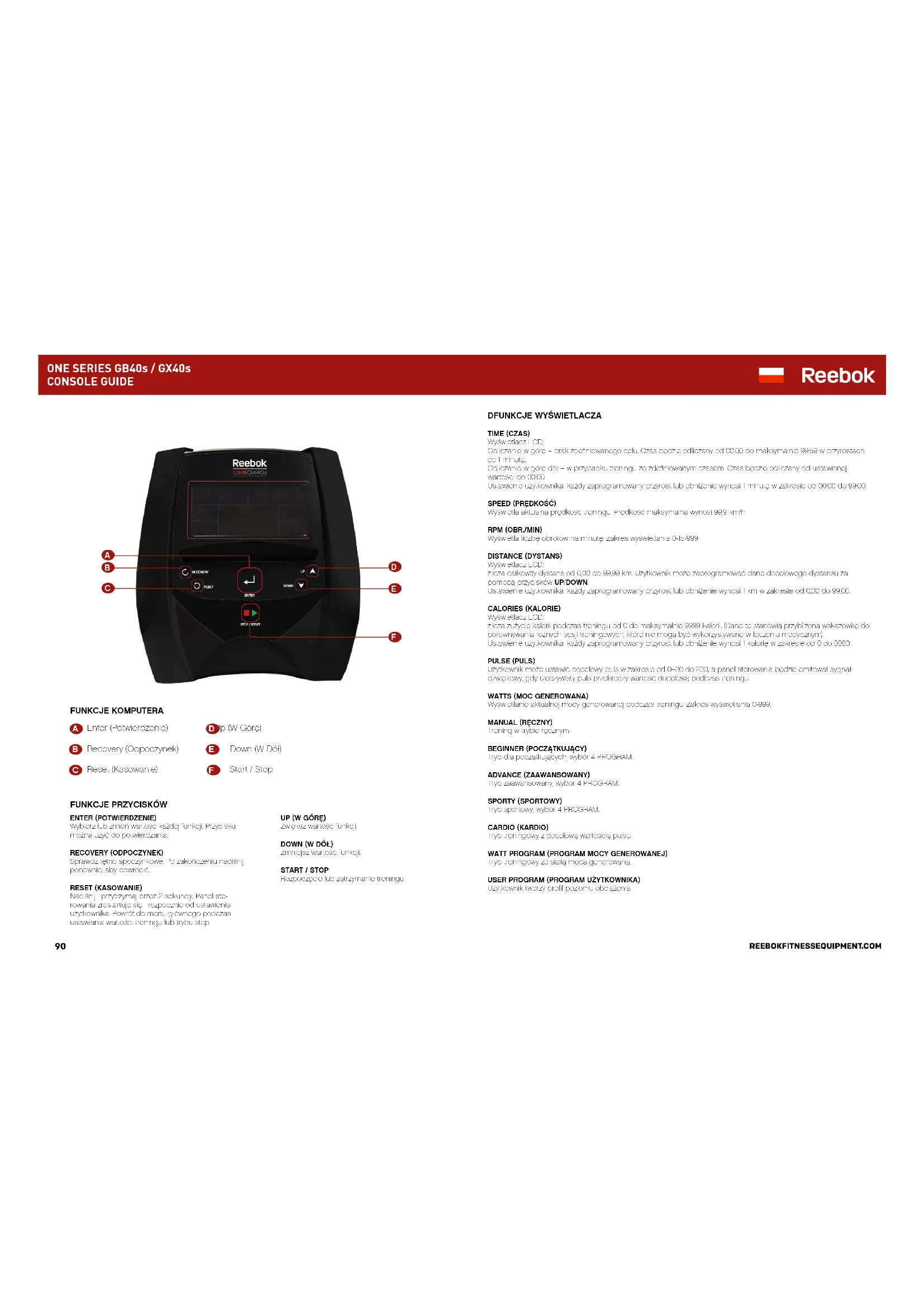 Znajdź bezpłatnie instrukcję urządzenia One GB40s Reebok w formacie PDF.