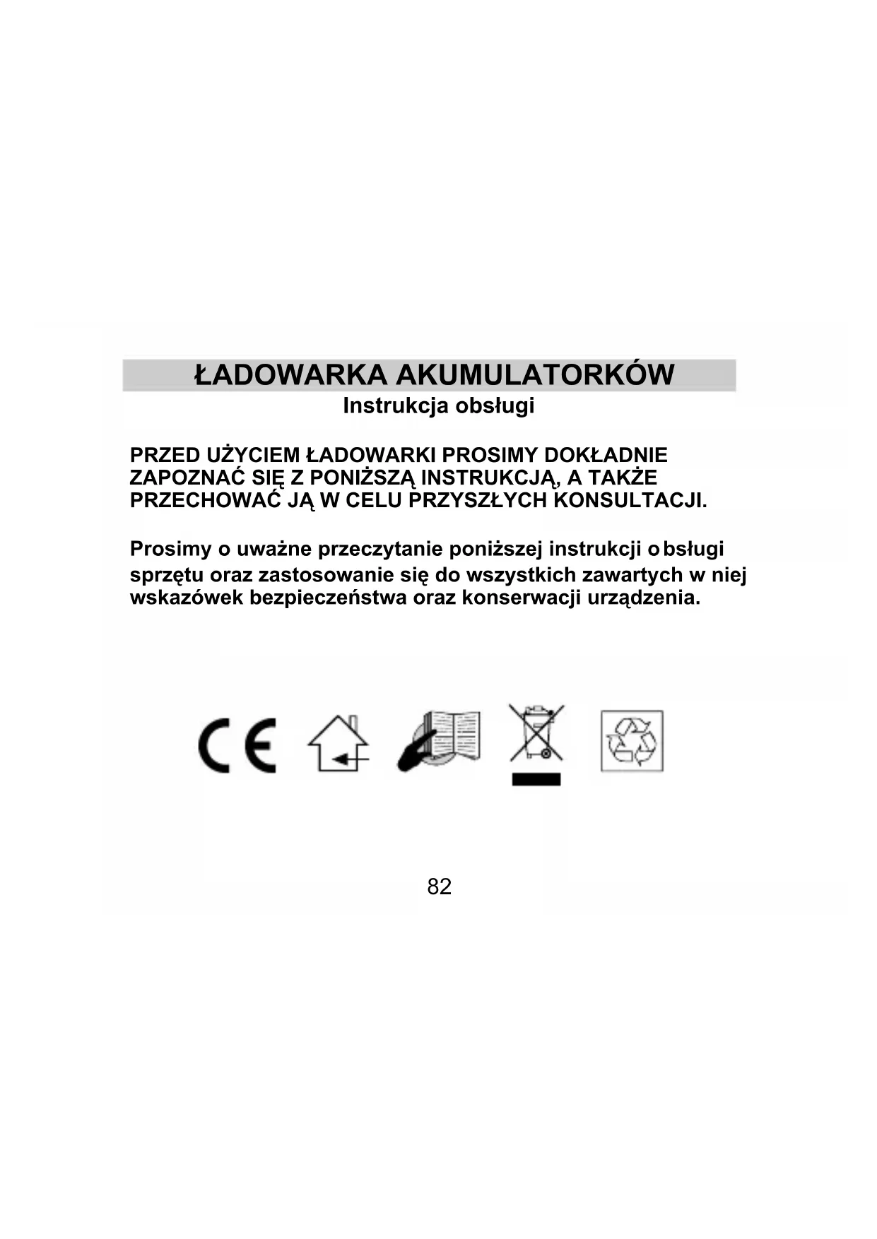 Instrukcja obsługi PRZED UŻYCIEM ŁADOWARKI PROSIMY DOKŁADNIE ZAPOZNAĆ SIĘ Z PONIŻSZĄ INSTRUKCJĄ, A TAKŻE PRZECHOWAĆ JĄ W CELU PRZYSZŁYCH KONSULTACJI. Prosimy o uważne przeczytanie poniższej instrukcji o bsługi sprzętu oraz zastosowanie się do wszystkich zawartych w niej wskazówek bezpieczeństwa oraz konserwacji urządzenia.83