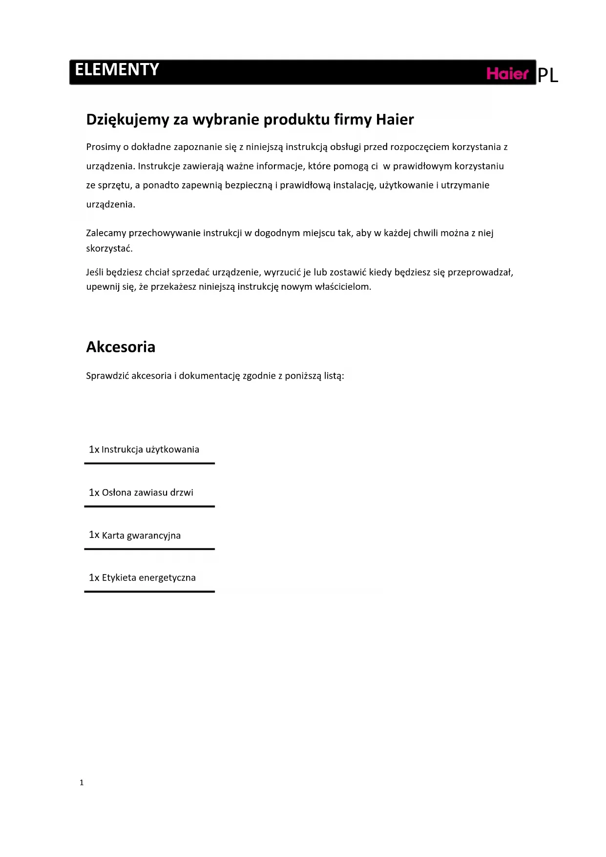 INSTRUKCJA OBSŁUGI C3FE732CSJ HAIER