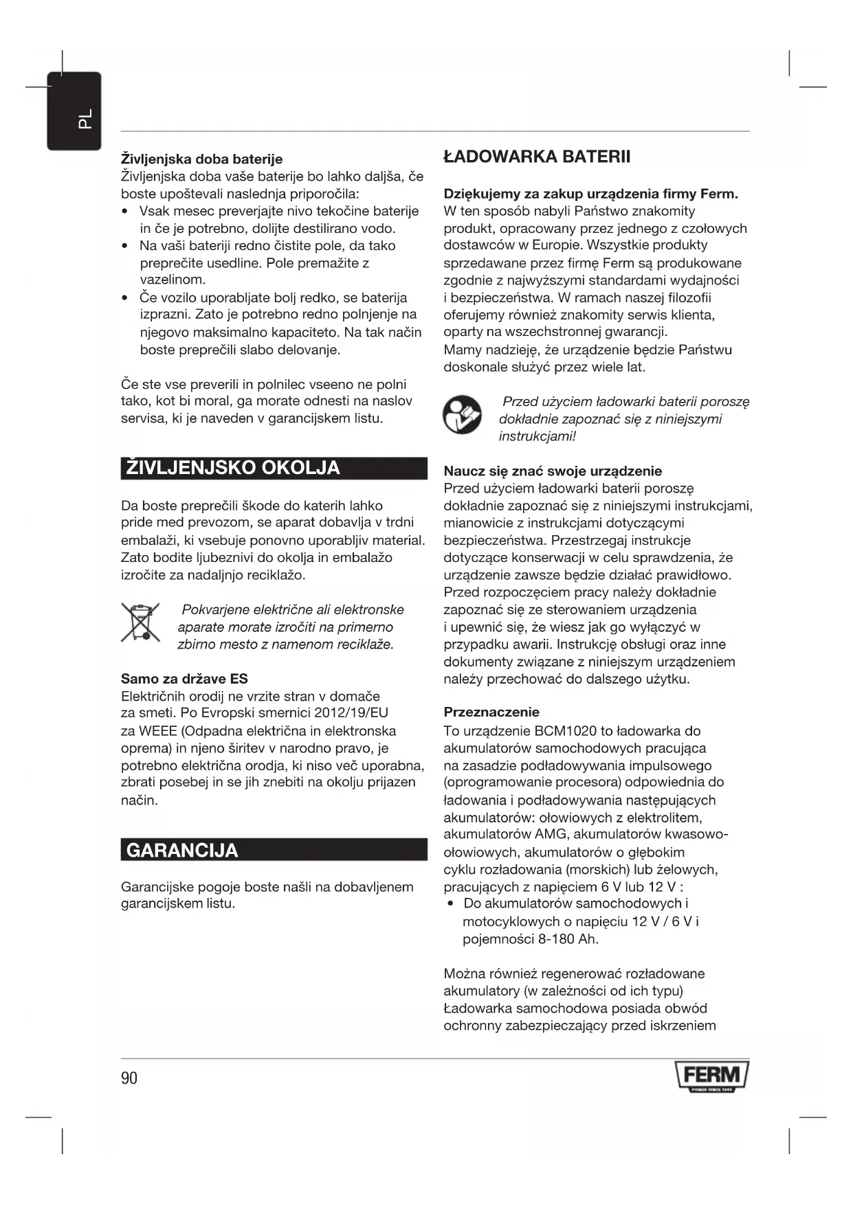 Przed uzyciem ladowarki baterii porosze dokladnie zapoznać sie z niniejszymi instrukcjami, mianowicie z instrukcjami dotyczymi bezpieczędwa. Przejstrzegaj instrukcje dotyczné konserwacje w celu sprawdzenia, ze urzadzenia zawsze bedzie dzialac prowidłowo. Przed Rozpoczȩciem pracy naleź do klokadnie zapoznać sie ze sterowaniem urzadzenia i upewnić sie, ze wiesz jak go wyłacZYC w przypadku awarii. Instrukcje obstugi oraz innedokumenty zwiazane z niniejszym urzadzeniem naleź przechować do dalszego uzytku.