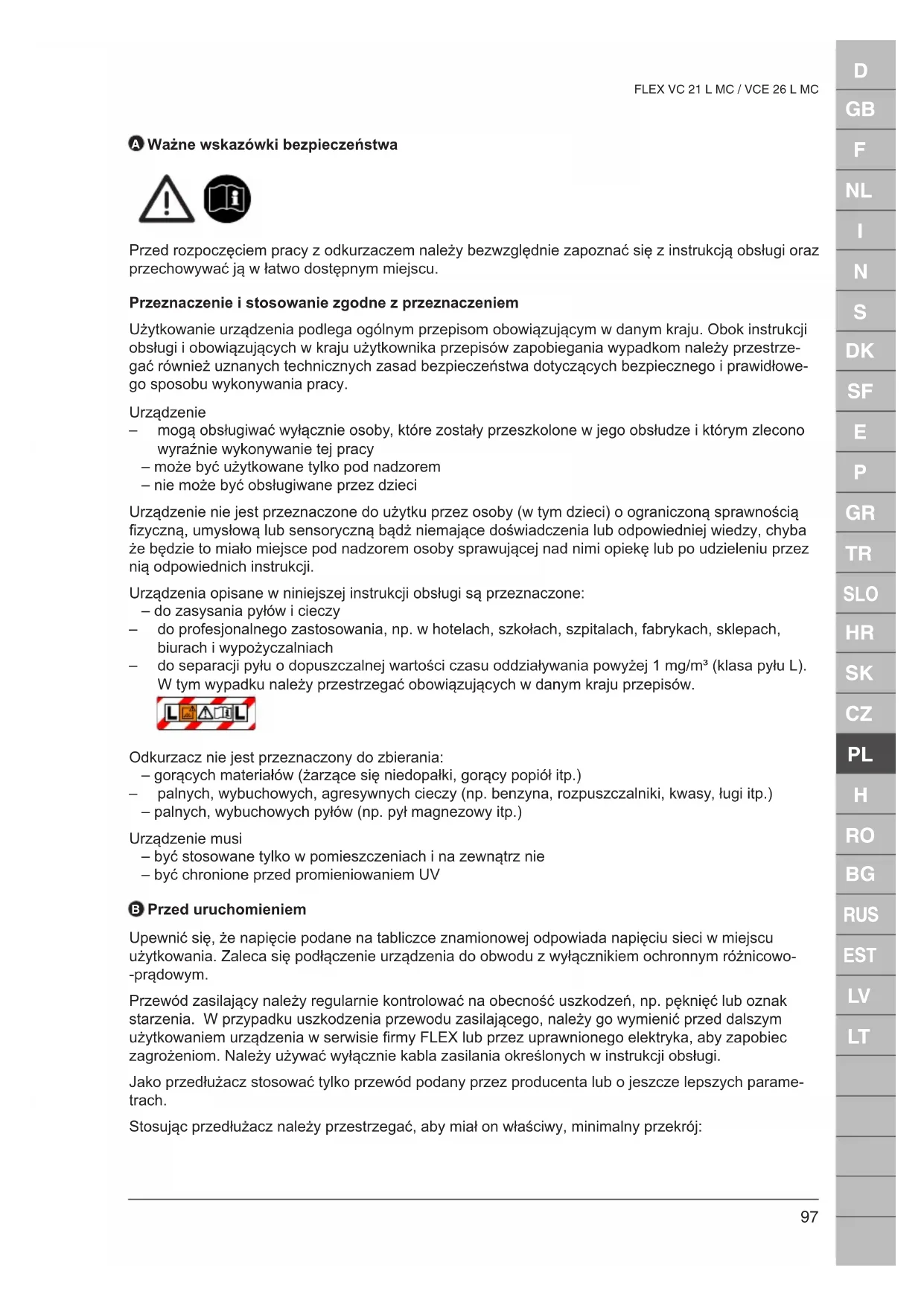 VCE 26 L MC - Odkurzacz Flex - Bezpłatna instrukcja obsługi
