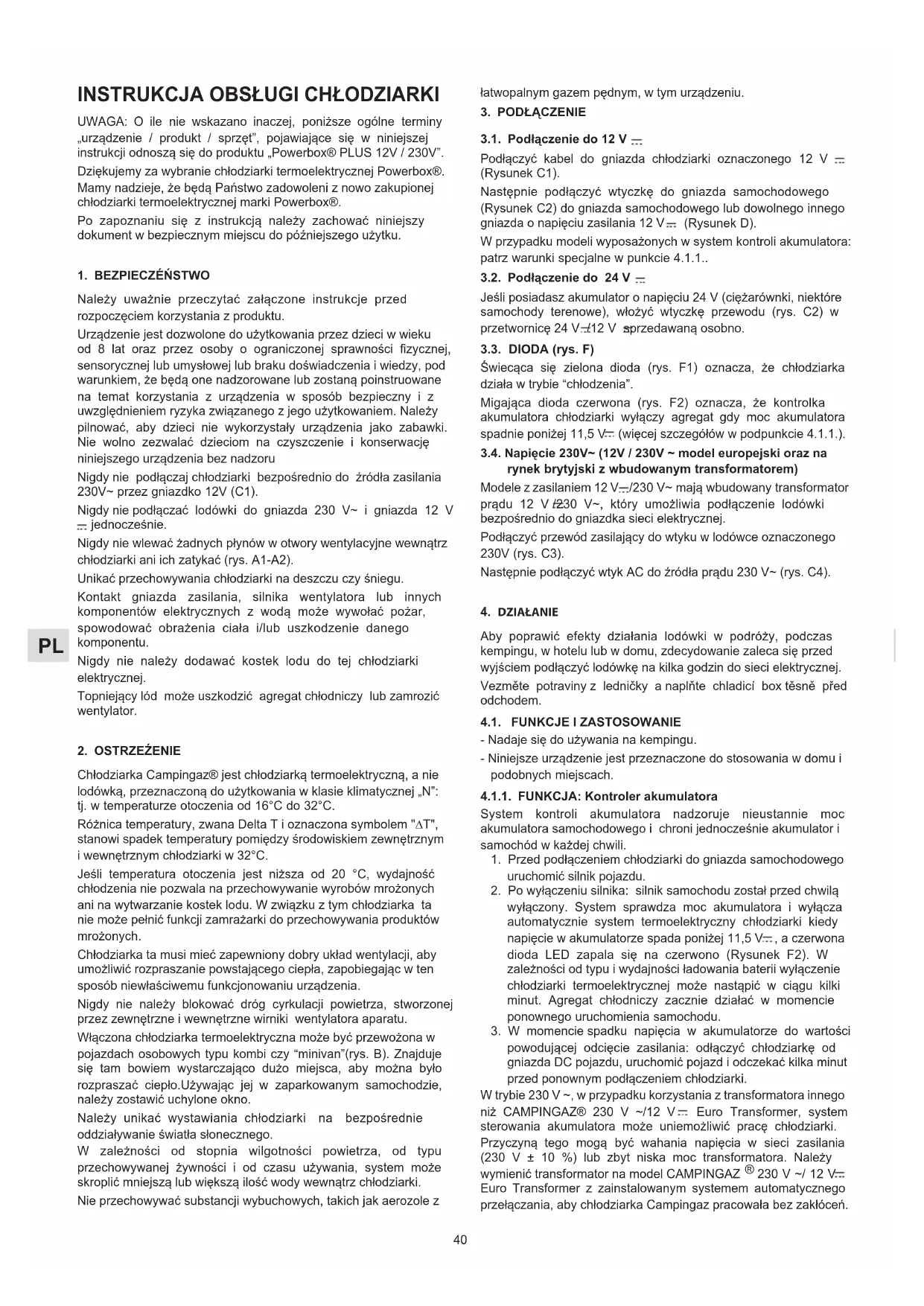 INSTRUKCJA OBSŁUGI PowerBox Plus 36L 12V230V CAMPINGAZ