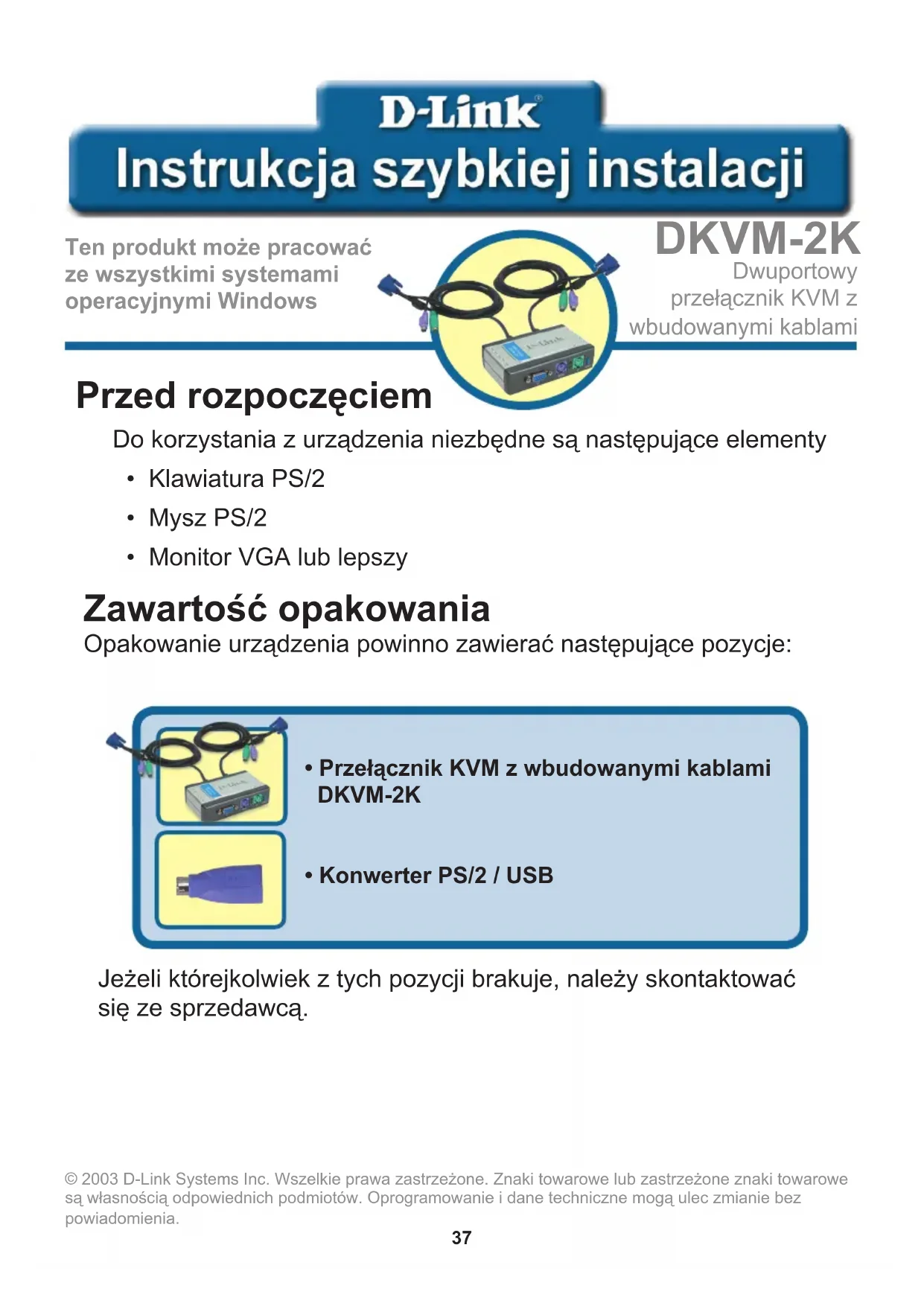 INSTRUKCJA OBSŁUGI DKVM2K D-LINK
