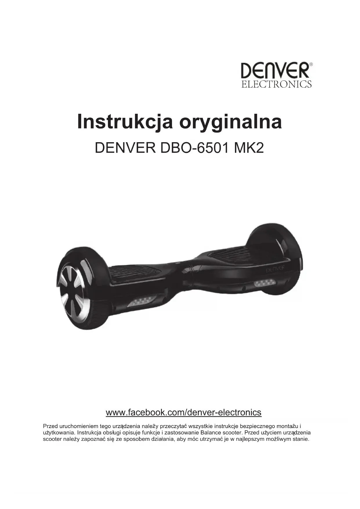 DBO6501 MK2 - Hulajnoga samobalansująca DENVER - Bezpłatna instrukcja obsługi