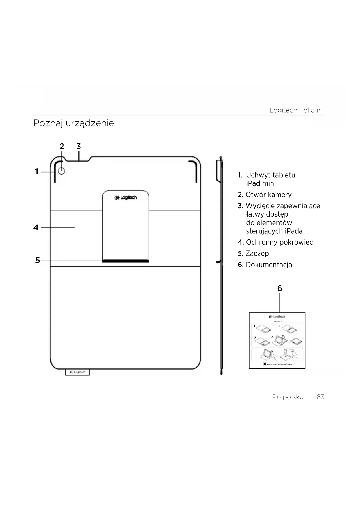 Folio m1www.logitech.com/support/folio-m1Logitech Folio m1 64 Po polsku Przygotowanie i użycie etui z Padem mini Przygotowanie etui