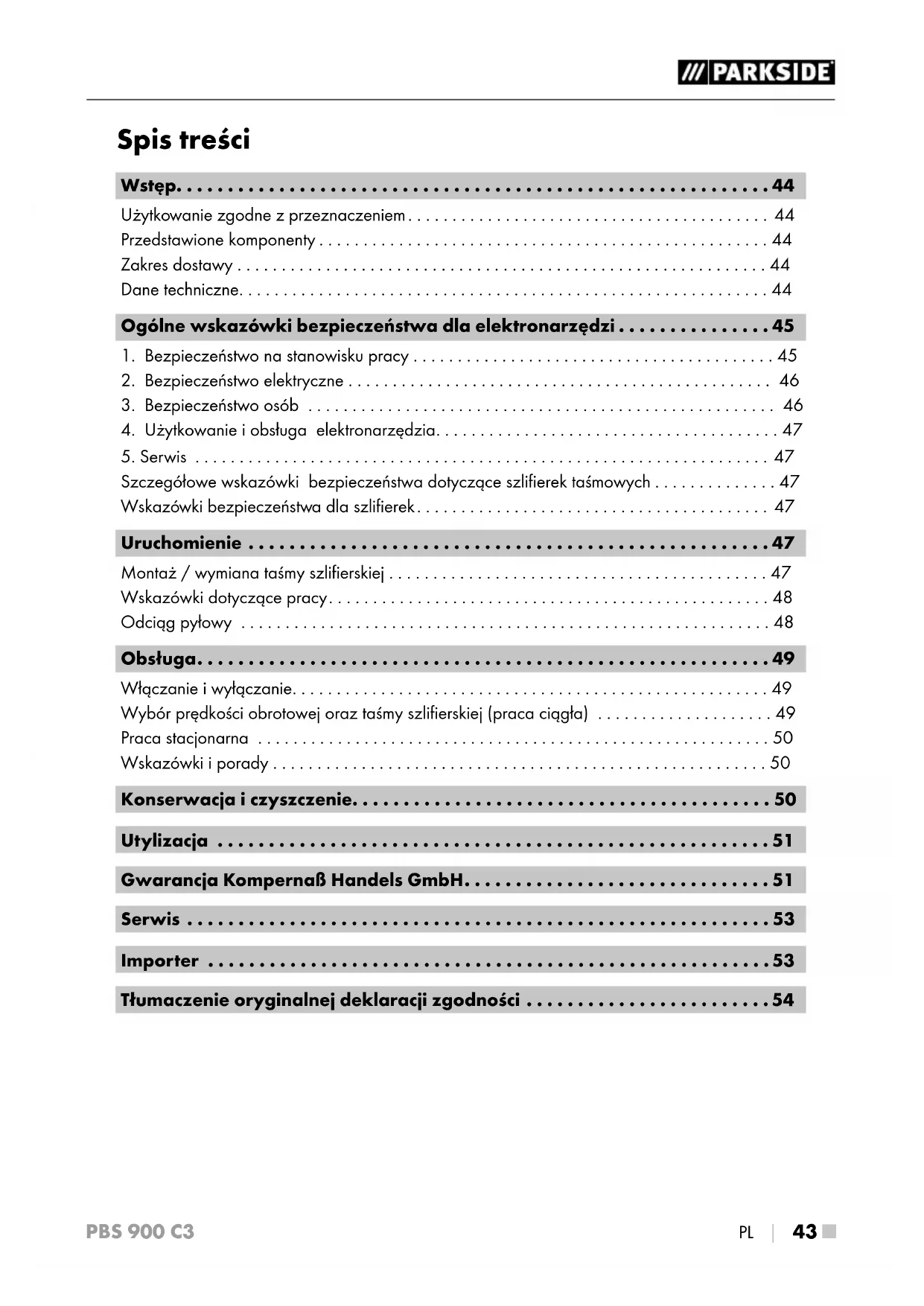 PBS 900 C3 - Szlifierka PARKSIDE - Bezpłatna instrukcja obsługi