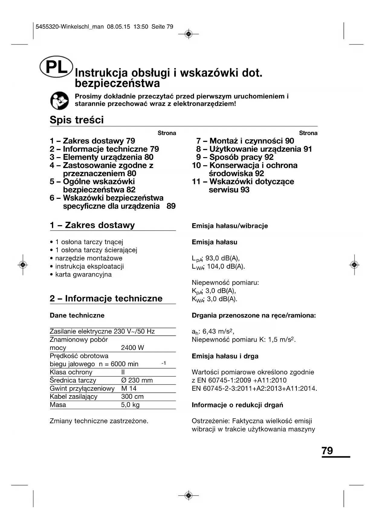 Prosimy dokladnie przyczytcz przejd pierwszym uruchomieniem i starannie przyechowa z elektronarzedziem!