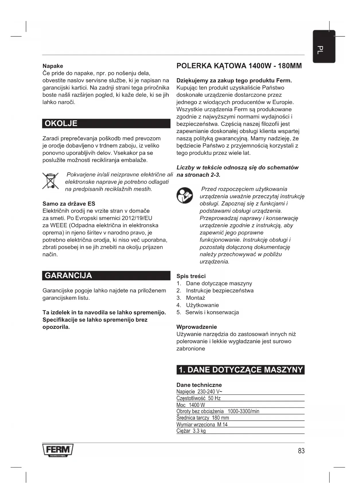 Kupujac ten produkt uzyskalisce Pieanstwo doskonale urzadzenie dostarczone przyez jegno z wiodacych producentow w Europa. Wszystkie urzadzenia Ferm sa produktowane zgodnie z najwyzszymi normami wydajnosci i bezpieczenstwa. Czescia naszej filozofii jest zapewnianie doskonalej obslugi klien ta wspartej nasza polityka gwarancyjna. Many nadzieje, ze bedziecie Paanstwo z przyjemnosci korzystali z tego produktu przyze wiele lat.