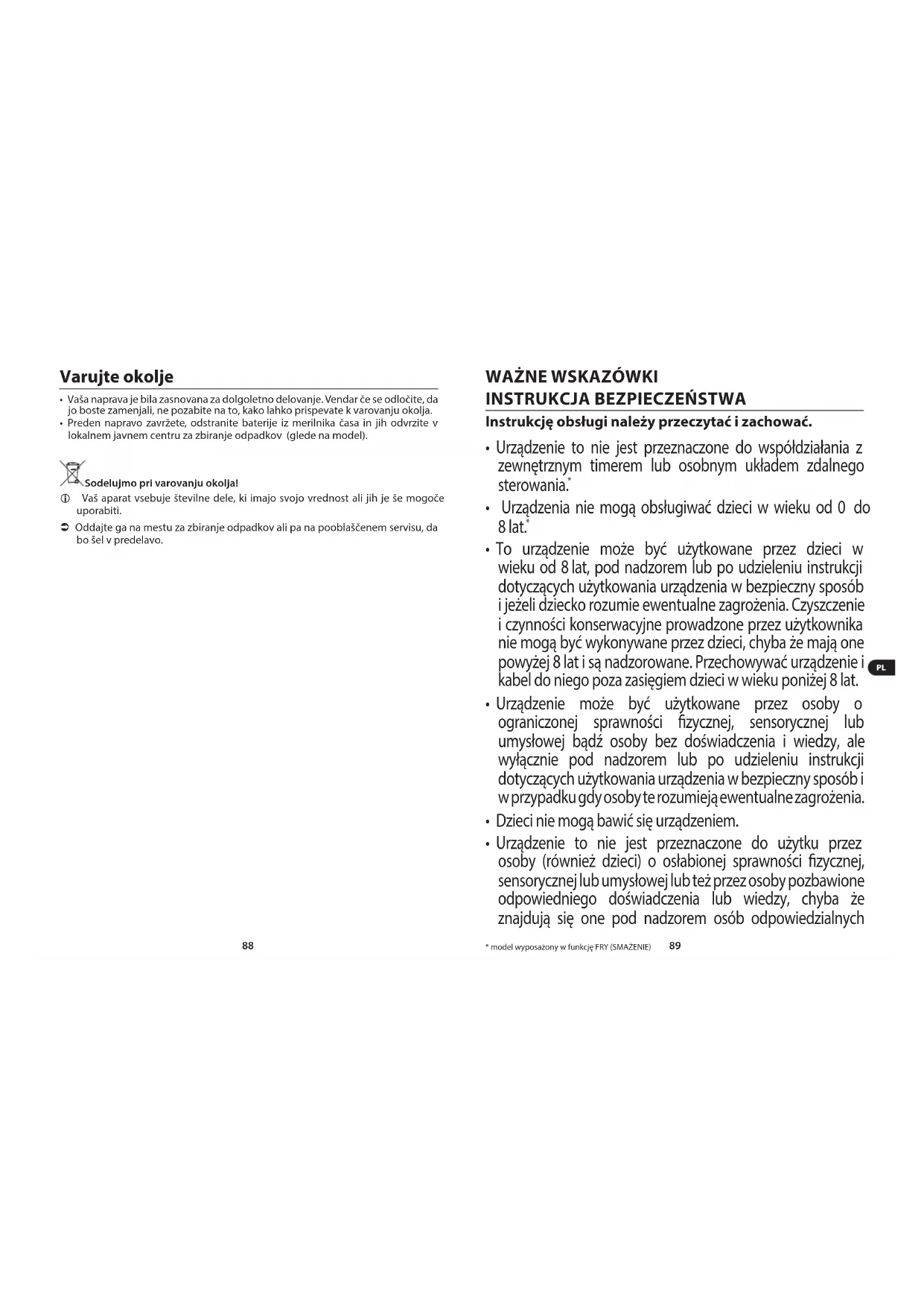 - model wyposażony w funkcję FRY (SMAŻENIE) Varujte okolje