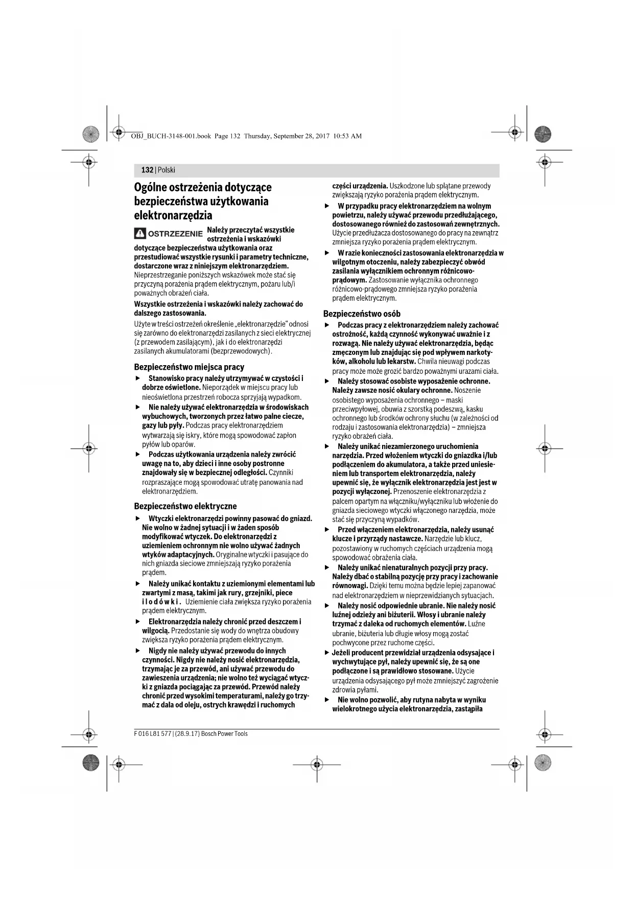 Ciężar odpowiednio do EPTA-Procedure 01:2014 kg 0,38 Klasa ochrony / II Akumulatorowe nożyce do żywopłotów UniversalHedge Pole 18 OBJ_BUCH-3148-001.book Page 137 Thursday, September 28, 2017 10:53 AM138 | Polski F 016 L81 577 | (28.9.17) Bosch Power Tools Należy wprowadzić dodatkowe środki bezpieczeństwa, mające na celu ochronę operatora przed skutkami ekspozycji na drgania, np.: konserwacja elektronarzędzia i narzędzi roboczych, zabezpieczenie odpowiedniej temperatury rąk, ustalenie kolejności operacji roboczych. Montaż i praca Włączenie Dla własnego bezpieczeństwa Przed przystąpieniem do wykonywania wszelkich czynności obsługowych przy narzędziu (np. konserwacji, wymianie narzędzi roboczych itp), jak również przed przenoszeniem, transportem lub przechowywaniem narzędzia, należy wyjąć z niego akumulator. Niezamierzone uruchomienie włącznika/wyłącznika z blokadą grozi skaleczeniem. Po wyłączeniu sekatora, noże obracają się jeszcze przez parę ułamków sekund. Nie dotykać noży znajdujących się w ruchu. Włącznik należy uruchamiać tylko wówczas, gdy akumulator jest całkowicie wsunięty. Montaż/demontaż akumulatora (zob. rys. D+K) Wskazówka: Zastosowanie nieodpowiednich akumulatorów może spowodować zakłócenia w pracy lub uszkodzenie narzędzia. Wsunąć naładowany akumulator 13 do uchwytu teleskopowego. Upewnić się, czy akumulator jest dobrze osadzony. Aby wyjąć akumulator 13 z narzędzia należy wcisnąć blokadę akumulatora 14 i wyjąć akumulator, pociągając go do przodu w kierunku listwy tnącej. Ładowanie akumulatora Nie wolno stosować ładowarek innego typu. Ładowarka, wchodząca w zakres dostawy, dopasowana jest do wbudowanego w nabytym narzędziu ogrodowym akumulatora litowo-jonowego. Zwrócić uwagę na napięcie w sieci! Napięcie źródła prądu musi zgadzać się z danymi na tabliczce znamionowej ładowarki. Ładowarki o napięciu 230 V można podłączyć do sieci 220 V. Akumulator wyposażony został w czujnik temperatury, który dopuszcza ładowanie tylko w zakresie temperatur, leżącym między 0 °C i 45 °C. W ten sposób zagwarantowana jest długa żywotność akumulatora. Wskazówka: W momencie dostawy akumulator jest naładowany częściowo. Aby zagwarantować wykorzystanie najwyższej wydajności akumulatora, należy przed pierwszym użyciem całkowicie naładować akumulator w ładowarce. Akumulator litowo-jonowy można doładować w dowolnej chwili, nie powodując tym skrócenia jego żywotności. Przerwanie procesu ładowania nie niesie za sobą ryzyka uszkodzenia ogniw akumulatora. Dzięki systemowi elektronicznej ochrony ogniw „Electronic Cell Protection (ECP)“ akumulator litowo-jonowy jest zabezpieczony przed głębokim rozładowaniem. Przy rozładowanym akumulatorze układ ochronny narzędzia ogrodowego wyłącza je. Narzędzie ogrodowe nie działa. Po automatycznym wyłączeniu narzędzia ogrodowego nie należy naciskać ponownie włącznika/wyłącznika. Może to spowodować uszkodzenie akumulatora. Należy przestrzegać wskazówek dotyczących likwidacji akumulatorów. Ładowanie Ładowanie rozpoczyna się w momencie włożenia wtyczki ładowarki do gniazdka sieciowego i wstawienia akumulatora do wnęki ładowania . Inteligentny proces ładowania pozwala na automatyczne rozpoznawanie stanu naładowania akumulatora i optymalny dobór prądu ładowania, w zależności od temperatury i napięcia akumulatora. Ma to wpływ na przedłużenie żywotności akumulatora, a poza tym akumulator będzie stale całkowicie naładowany przez cały czas przechowywania w ładowarce. Znaczenie wskaźników (AL 1830 CV) Migający (w szybkim tempie) zielony wskaźnik naładowania akumulatora Proces szybkiego ładowania sygnalizowany jest szybkim miganiem zielonego wskaźnika stanu naładowania akumulatora . Wskazówka: Szybkie ładowanie jest możliwe tylko wtedy, gdy temperatura akumulatora znajduje się w dopuszczalnym zakresie temperatur, zob. rozdział „Dane techniczne“. Planowane działanie Rysunek Strona Przedstawione graficznie komponenty A 320 Zakres dostawy B 321 Montaż narzędzia C 321 Wkładanie akumulatora D 321 Mocowanie taśmy naramiennej E 322 Regulacja wysokości teleskopu F 322 Zdejmowanie osłony noża Smarowanie listwy tnącej G 323 Ustawianie ruchomej głowicy H 323 Włączanie/wyłączanie I 324 Wskazówki robocze J 324–325 Wyjmowanie akumulatora K 326 Konserwacja i przechowywanie L 326 Wybór osprzętu