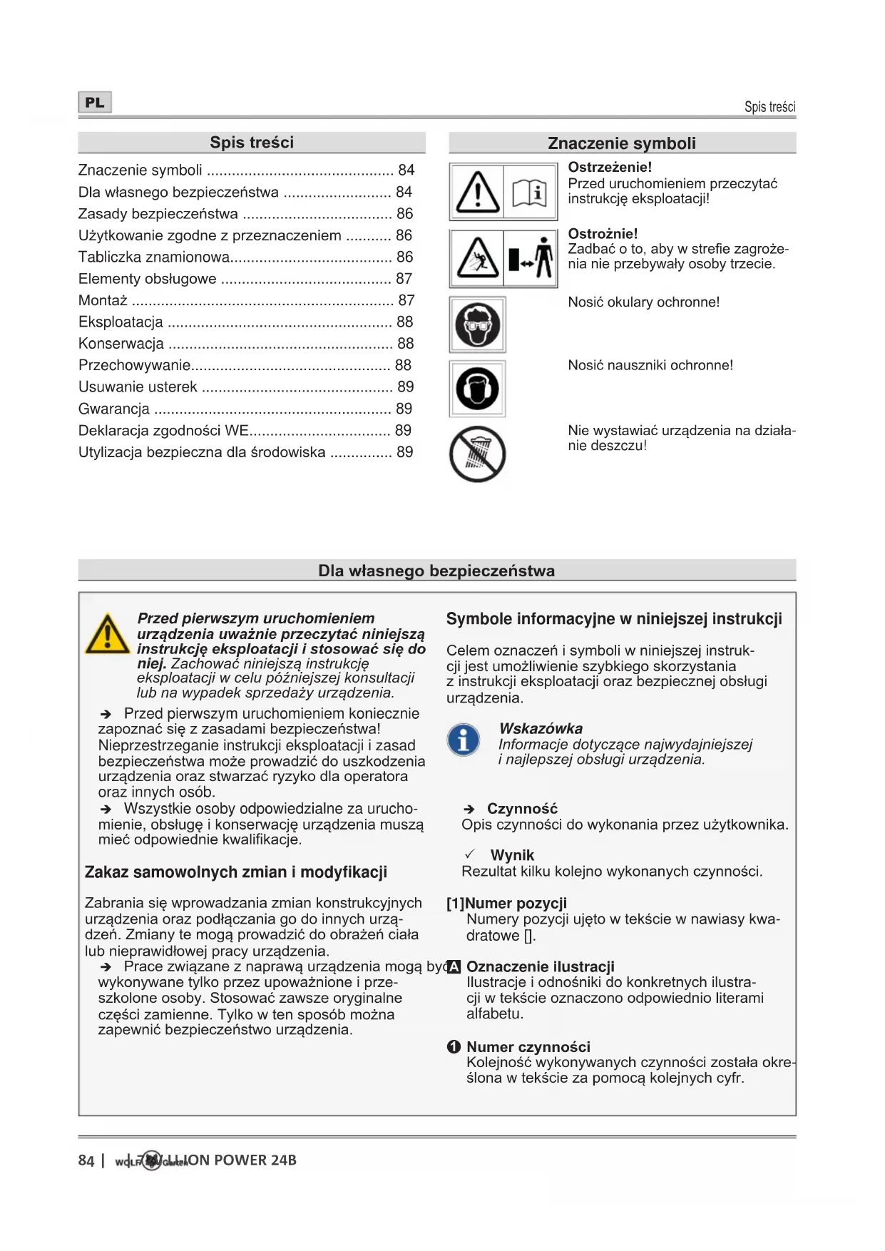 INSTRUKCJA OBSŁUGI 72V LiION Power 24B Wolf Garten