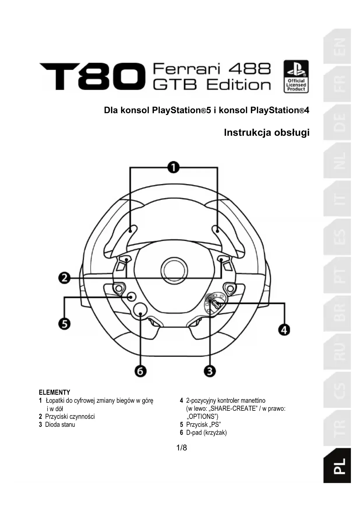 T80 Ferrari 488 GTB Edition - Kontroler THRUSTMASTER - Bezpłatna instrukcja obsługi