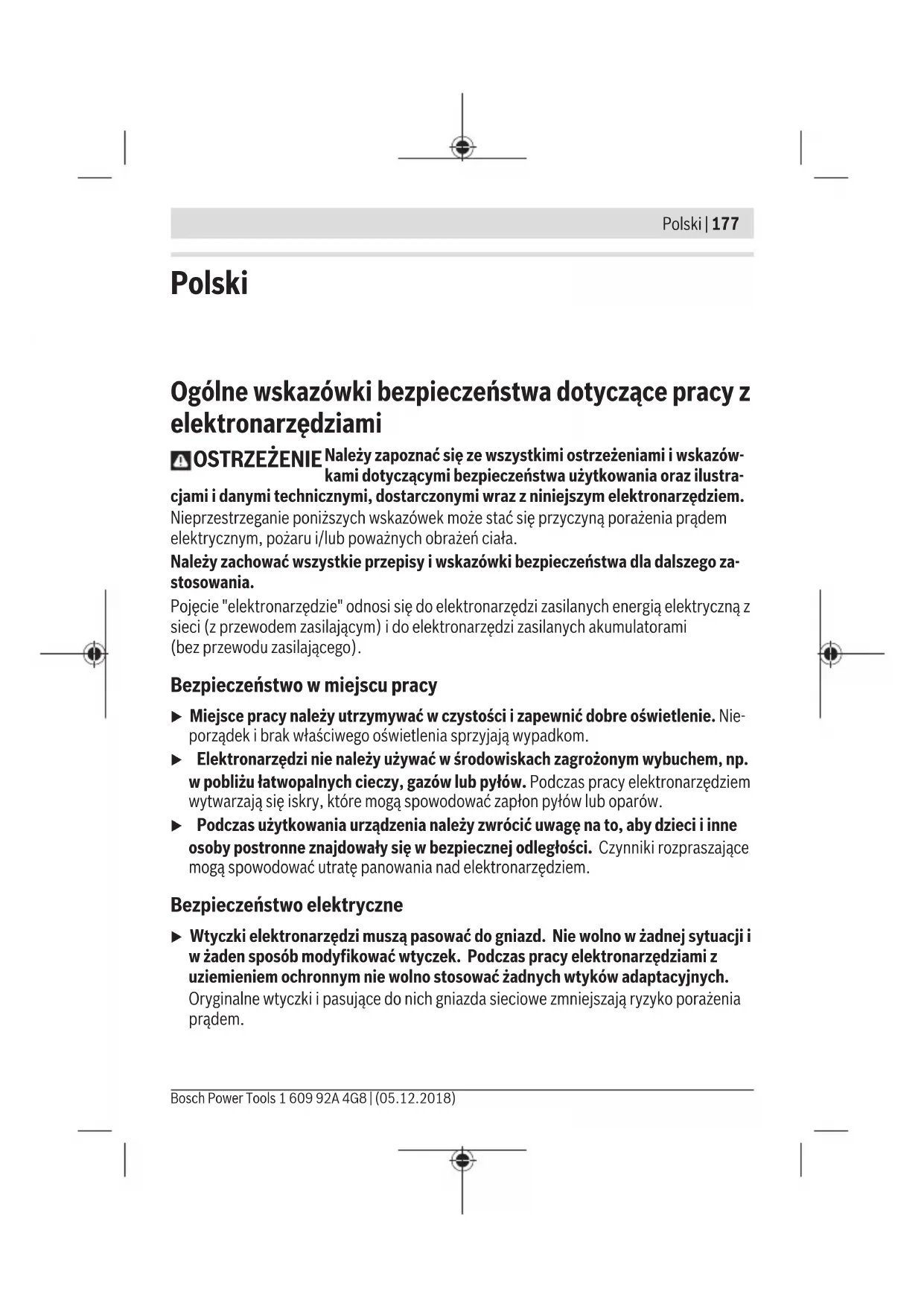 soketi kapağının (8) çalışma sırasında kapalı olduğundan emin olun. Böylece toz girmesini önlersiniz. İşletme türünün ayarlanması İstenen çalışma modu, çalışma modu seçme şalteri (3) ile ayarlanabilir. Bunun için şalteri ilgili çalışma modu sembolüne getirin. Sembol Çalışma modu Vidalama = Sağa hareket + 1. vites Delme = Sağa hareket + 2. vites R = Sola hareket + 1. vites Açma/kapama Elektrikli el aletini çalıştırmak için açma/kapama şalterine (4) basın ve şalteri basılı tutun. Elektrikli el aletini kapatmak, için açma/kapama şalterini (4) bırakın. Bakım ve servis Bakım ve temizlik u Elektrikli el aletinde bir çalışma yapmadan önce (örneğin bakım, uç değiştirme vb.), aleti taşırken ve saklarken her defasında aküyü elektrikli el aletinden çıkarın.Aletin açma/kapama şalterine yanlışlıkla basıldığında yaralanmalar ortaya çıkabilir. 1 609 92A 4G8 | (05.12.2018) Bosch Power ToolsTürkçe | 173 u İyi ve güvenli çalışabilmek için elektrikli el aletini ve havalandırma aralıklarını temiz tutun. Müşteri servisi ve uygulama danışmanlığı Müşteri servisleri ürününüzün onarım ve bakımı ile yedek parçalarına ait sorularınızı yanıtlandırır. Demonte görünüşleri ve yedek parçalara ait bilgileri şu sayfada da bulabilirsiniz: www.bosch-pt.com Bosch uygulama danışma ekibi ürünlerimiz ve aksesuarları hakkındaki sorularınızda sizlere memnuniyetle yardımcı olur. Bütün başvuru ve yedek parça siparişlerinizde ürünün tip etiketi üzerindeki 10 haneli ürün kodunu mutlaka belirtin. Sadece Türkiye için geçerlidir: Bosch genel olarak yedek parçaları 7 yıl hazır tutar. Türkçe Bosch Sanayi ve Ticaret A.Ş. Elektrikli El Aletleri Aydınevler Mah. İnönü Cad. No: 20 Küçükyalı Ofis Park A Blok 34854 Maltepe-İstanbul Tel.: 444 80 10 Fax: +90 216 432 00 82 E-mail: iletisim@bosch.com.tr www.bosch.com.tr Bulsan Elektrik İstanbul Cad. Devrez Sok. İstanbul Çarşısı No: 48/29 İskitler Ankara Tel.: +90 312 3415142 Tel.: +90 312 3410302 Fax: +90 312 3410203 E-mail: bulsanbobinaj@gmail.com Faz Makine Bobinaj Cumhuriyet Mah. Sanayi Sitesi Motor İşleri Bölümü 663 Sk. No:18 Antalya Tel.: +90 242 3465876 Tel.: +90 242 3462885 Fax: +90 242 3341980 E-mail: info@fazmakina.com.tr Bosch Power Tools 1 609 92A 4G8 | (05.12.2018)174 | Türkçe Körfez Elektrik Karaağaç Mah. Sümerbank Cad. No:18/2 Erzincan Tel.: +90 446 2230959 Fax: +90 446 2240132 E-mail: bilgi@korfezelektrik.com.tr Değer İş Bobinaj İsmetpaşa Mah. İlk Belediye Başkan Cad. 5/C Şahinbey/Gaziantep Tel.: +90 342 2316432 Fax: +90 342 2305871 E-mail: degerisbobinaj@hotmail.com Tek Çözüm Bobinaj Küsget San.Sit.A Blok 11Nolu Cd.No:49/A Şehitkamil/Gaziantep Tel.: +90 342 2351507 Fax: +90 342 2351508 E-mail: cozumbobinaj2@hotmail.com Günşah Otomotiv Beylikdüzü Sanayi Sit. No: 210 Beylikdüzü İstanbul Tel.: +90 212 8720066 Fax: +90 212 8724111 E-mail: gunsahelektrik@ttmail.com Aygem 10021 Sok. No: 11 AOSB Çiğli İzmir Tel.: +90232 3768074 Fax: +90 232 3768075 E-mail: boschservis@aygem.com.tr Sezmen Bobinaj Ege İş Merkezi 1201/4 Sok. No: 4/B Yenişehir İzmir Tel.: +90 232 4571465 Tel.: +90 232 4584480 Fax: +90 232 4573719 E-mail: info@sezmenbobinaj.com.tr Ankaralı Elektrik Eski Sanayi Bölgesi 3. Cad. No: 43 Kocasinan 1 609 92A 4G8 | (05.12.2018) Bosch Power ToolsTürkçe | 175 Kayseri Tel.: +90 352 3364216 Tel.: +90 352 3206241 Fax: +90 352 3206242 E-mail: gunay@ankarali.com.tr Asal Bobinaj Eski Sanayi Sitesi Barbaros Cad. No: 24/C Samsun Tel.: +90 362 2289090 Fax: +90 362 2289090 E-mail: bpsasalbobinaj@hotmail.com Üstündağ Elektrikli Aletler Nusretiye Mah. Boyacılar Aralığı No: 9 Tekirdağ Tel.: +90 282 6512884 Fax: +90 282 6521966 E-mail: info@ustundagsogutma.com Marmara Elektrik Tersane cd. Zencefil Sok.No:6 Karaköy İstanbul Tel.: +90 212 2974320 Fax: +90 212 2507200 E-mail: info@marmarabps.com Bağrıaçıklar Oto Elektrik Motorlu Sanayi Çarşısı Doğruer Sk. No:9 Selçuklu Konya Tel.: +90 332 2354576 Tel.: +90 332 2331952 Fax: +90 332 2363492 E-mail: bagriaciklarotoelektrik@gmail.com Ermenistan, Azerbaycan, Gürcistan, Kırgızistan, Moğolistan, Tacikistan, Türkmenistan, Özbekistan TOO “Robert Bosch” Power Tools, Satış Sonrası Servis Rayimbek Cad., 169/1 050050, Almatı, Kazakistan Servis E-posta: service.pt.ka@bosch.com Resmi İnternet Sitesi: www.bosch.com, www.bosch-pt.com Bosch Power Tools 1 609 92A 4G8 | (05.12.2018)176 | Türkçe Nakliye Alet içindeki lityum iyon (Li-Ionen) aküler tehlikeli madde taşıma yönetmeliği hükümlerine tabidir. Aküler başka bir yükümlülük olmaksızın kullanıcı tarafından caddeler üzerinde taşınabilir. Üçüncü kişiler eliyle yollanma durumunda (örneğin hava yolu ile veya nakliye şirketleri ile) paketleme ve etiketlemeye ilişkin özel hükümlere uyulmalıdır. Gönderi paketlenirken bir tehlikeli madde uzmanından yardım alınmalıdır. Aküleri sadece ve ancak gövdelerinde hasar yoksa gönderin. Açık kontakları kapatın ve aküyü ambalaj içinde hareket etmeyecek biçimde paketleyin. Lütfen olası ek ulusal yönetmelik hükümlerine de uyun. Tasfiye Elektrikli el aletleri, aküler, aksesuar ve ambalaj malzemesi çevre dostu tasfiye amacıyla bir geri dönüşüm merkezine yollanmalıdır. Elektrikli el aletlerini ve aküleri/bataryaları evsel çöplerin içine atmayın! Sadece AB ülkeleri için: 2012/19/EU yönetmeliği uyarınca kullanım ömrünü tamamlamış elektrikli el aletleri ve 2006/66/EC yönetmeliği uyarınca arızalı veya kullanım ömrünü tamamlamış aküler/ bataryalar ayrı ayrı toplanmak ve çevre dostu tasfiye için bir geri dönüşüm merkezine yollanmak zorundadır. Aküler/bataryalar: Lityum iyon: Lütfen nakliye bölümündeki talimata uyun (Bakınız „Nakliye“, Sayfa176). 1 609 92A 4G8 | (05.12.2018) Bosch Power ToolsPolski | 177 Polski Ogólne wskazówki bezpiec