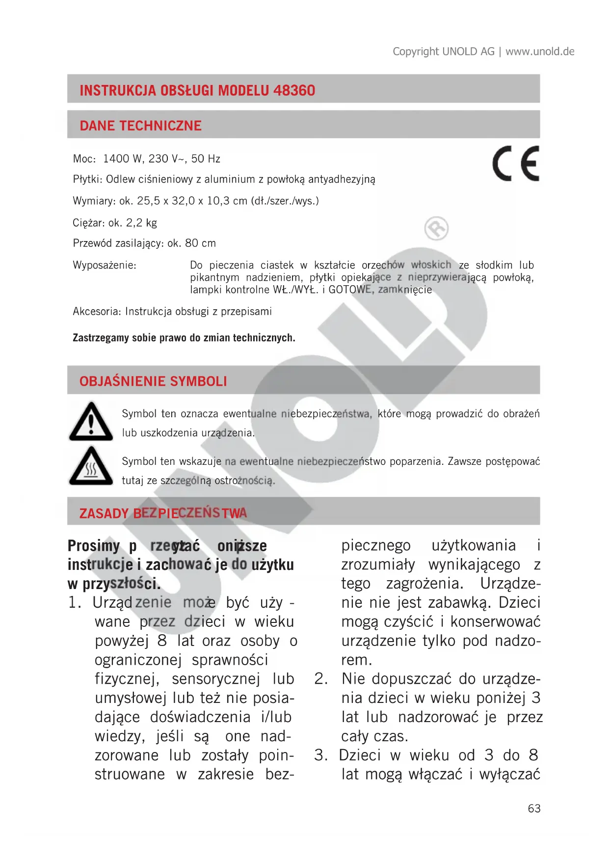 48360 - Gofrownica UNOLD - Bezpłatna instrukcja obsługi