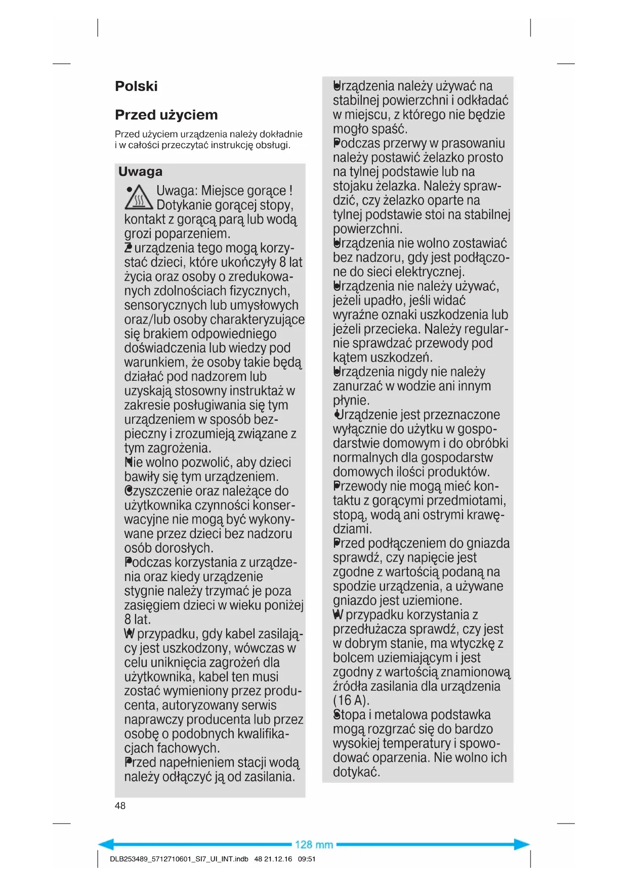 DLB253489_5712710601_SI7_UI_INT.indb 47 21.12.16 09:51Polski Przed użyciem Przed użyciem urządzenia należy dokładnie i w całości przeczytać instrukcję obsługi. Uwaga