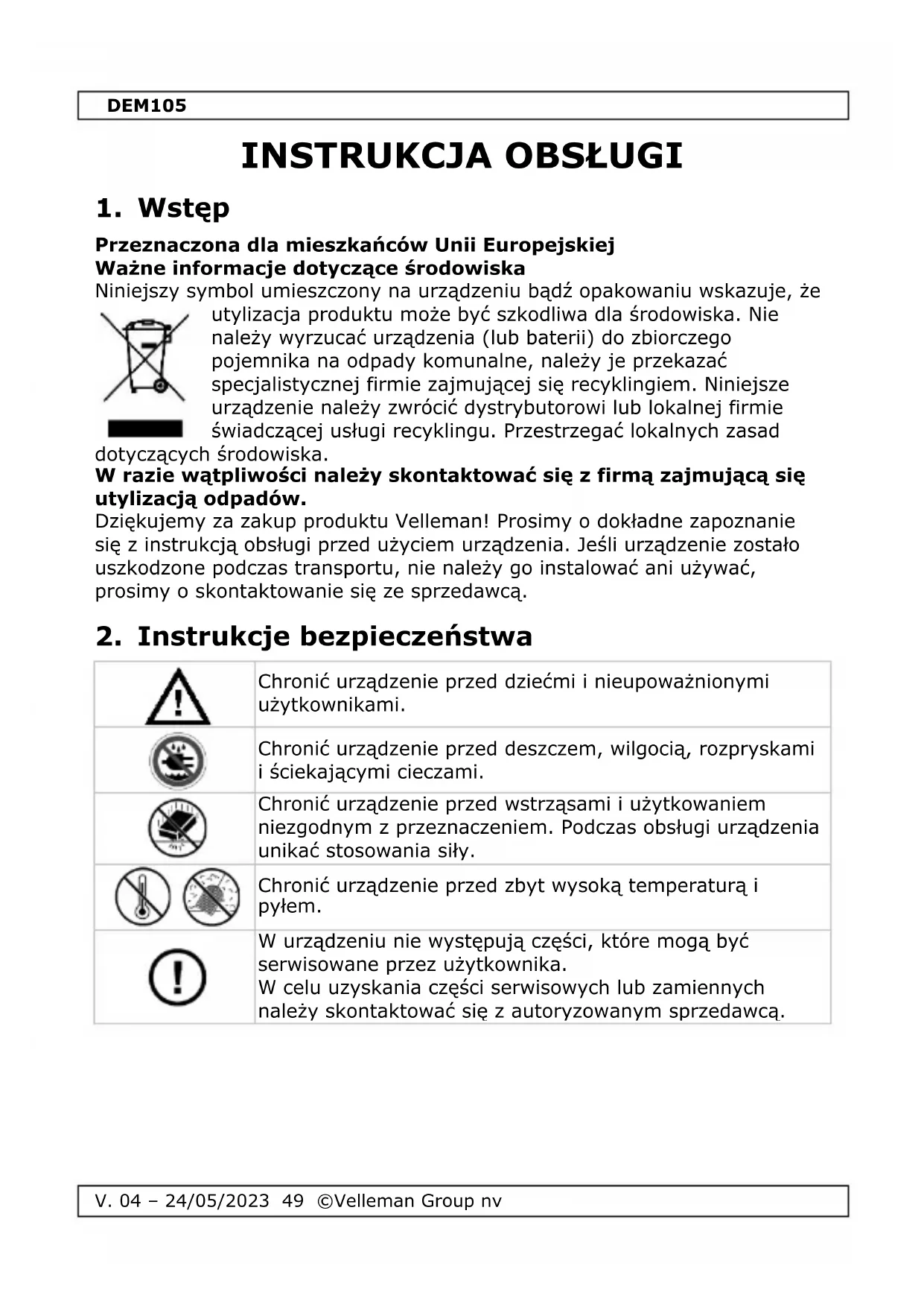INSTRUKCJA OBSŁUGI DEM105 VELLEMAN