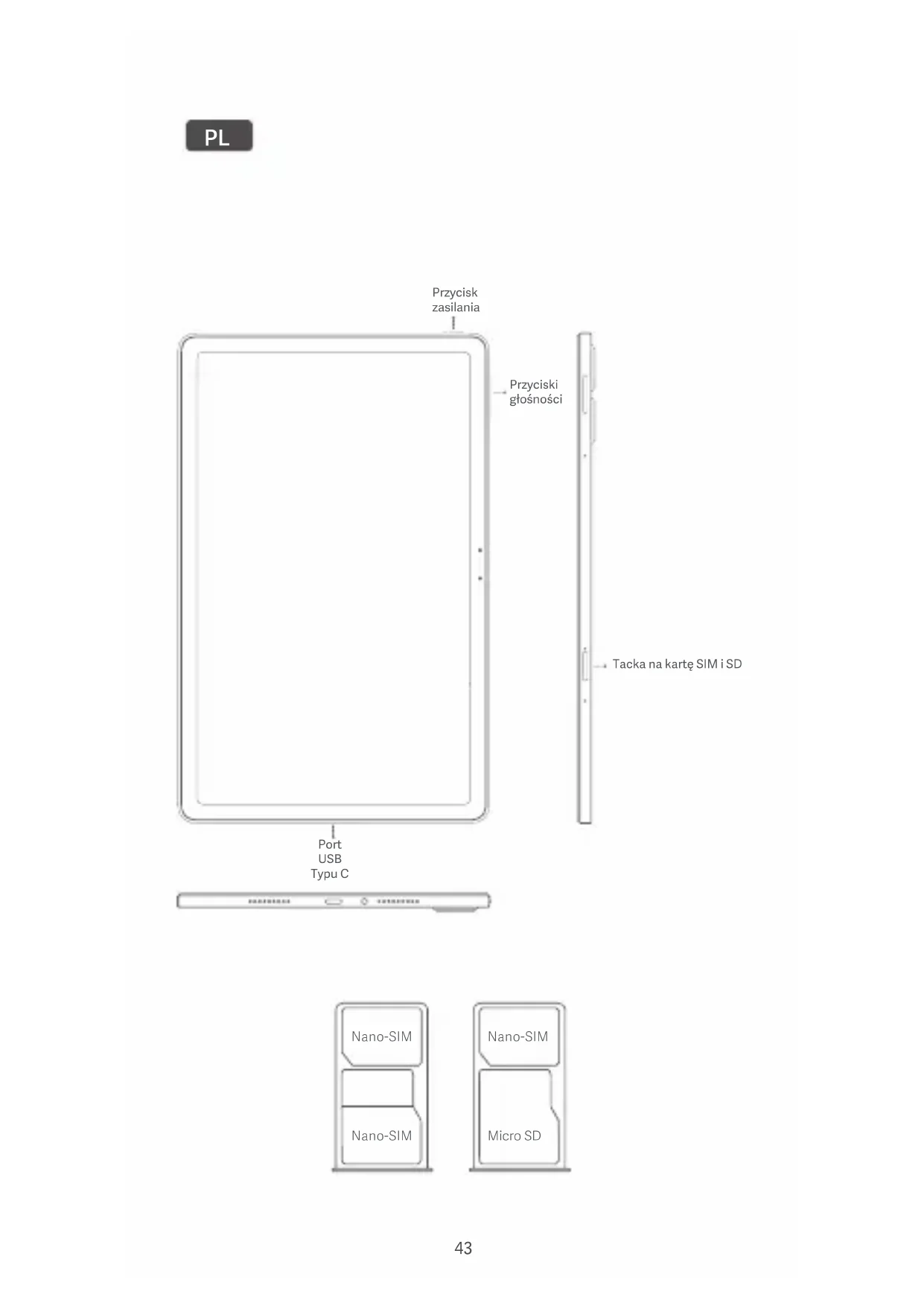 Nano-SIM Nano-SIM Nano-SIM Micro SD 43Dziękujemy za wybór Redmi Pad Pro 5G Nacisnąć i przytrzymać przycisk, aby włączyć urządzenie. Wykonać instrukcje wyświetlane na ekranie w celu konfiguracji urządzenia. Więcej informacji można znaleźć na naszej oficjalnej witrynie: www.mi.com/global/service/userguide O SIM: Nie należy wkładać niestandardowych kart SIM do gniazda karty SIM. Mogą one uszkodzić gniazdo karty SIM. OSTRZEŻENIE: Nie należy rozmontowywać urządzenia. WEEE Należy podjąć specjalne środki ostrożności, aby bezpiecznie utylizować ten produkt. Oznaczenie to wskazuje, że produkt nie może być usuwany wraz z innymi odpadami z gospodarstw domowych na terenie UE. Aby zapobiec szkodom dla środowiska lub zdrowia ludzkiego wynikającym z niewłaściwej utylizacji odpadów oraz w celu promowania zrównoważonego ponownego wykorzystania zasobów materiałowych, należy oddawać odpowiedzialnie materiały do recyklingu. Aby bezpiecznie poddać urządzenie recyklingowi, należy skorzystać z systemów zwrotu i zbiórki lub skontaktować się ze sprzedawcą, u którego urządzenie zostało pierwotnie zakupione. PRZESTROGA WYSTĘPUJE RYZYKO EKSPLOZJI W PRZYPADKU UŻYCIA BATERII NIEPRAWIDŁOWEGO TYPU. ZUŻYTE BATERIE NALEŻY UTYLIZOWAĆ ZGODNIE Z INSTRUKCJĄ. Aby zapobiec możliwym uszkodzeniom słuchu, nie należy przez dłuższy czas słuchać dźwięku przy wysokim poziomie głośności. Dodatkowe informacje o bezpieczeństwie i środki ostrożności opisane są pod adresem: www.mi.com/en/certification Ważne informacje dotyczące bezpieczeństwa Przed rozpoczęciem korzystania z urządzenia należy przeczytać wszystkie poniższe informacje dotyczące bezpieczeństwa: