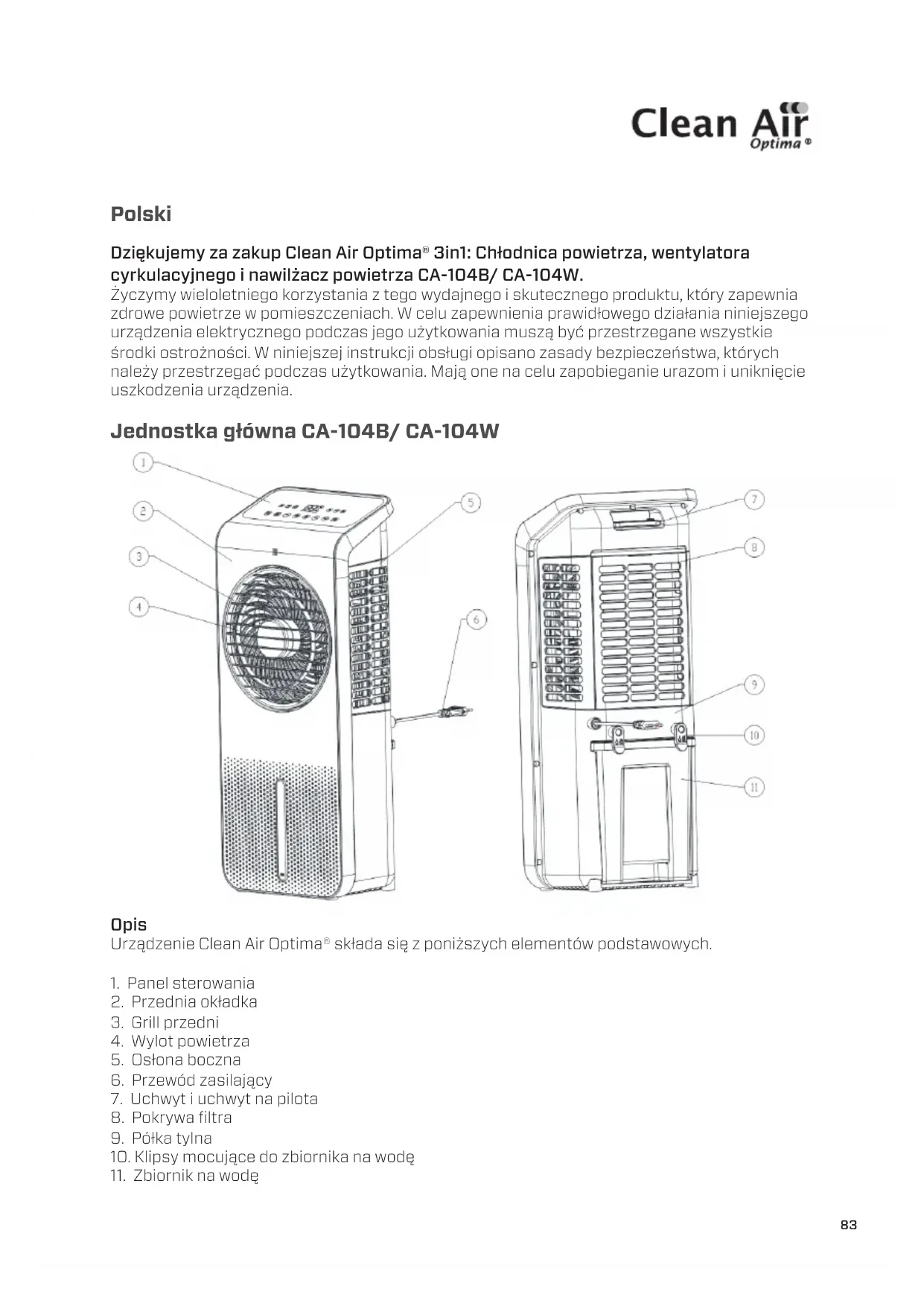 INSTRUKCJA OBSŁUGI CA104 Clean Air Optima