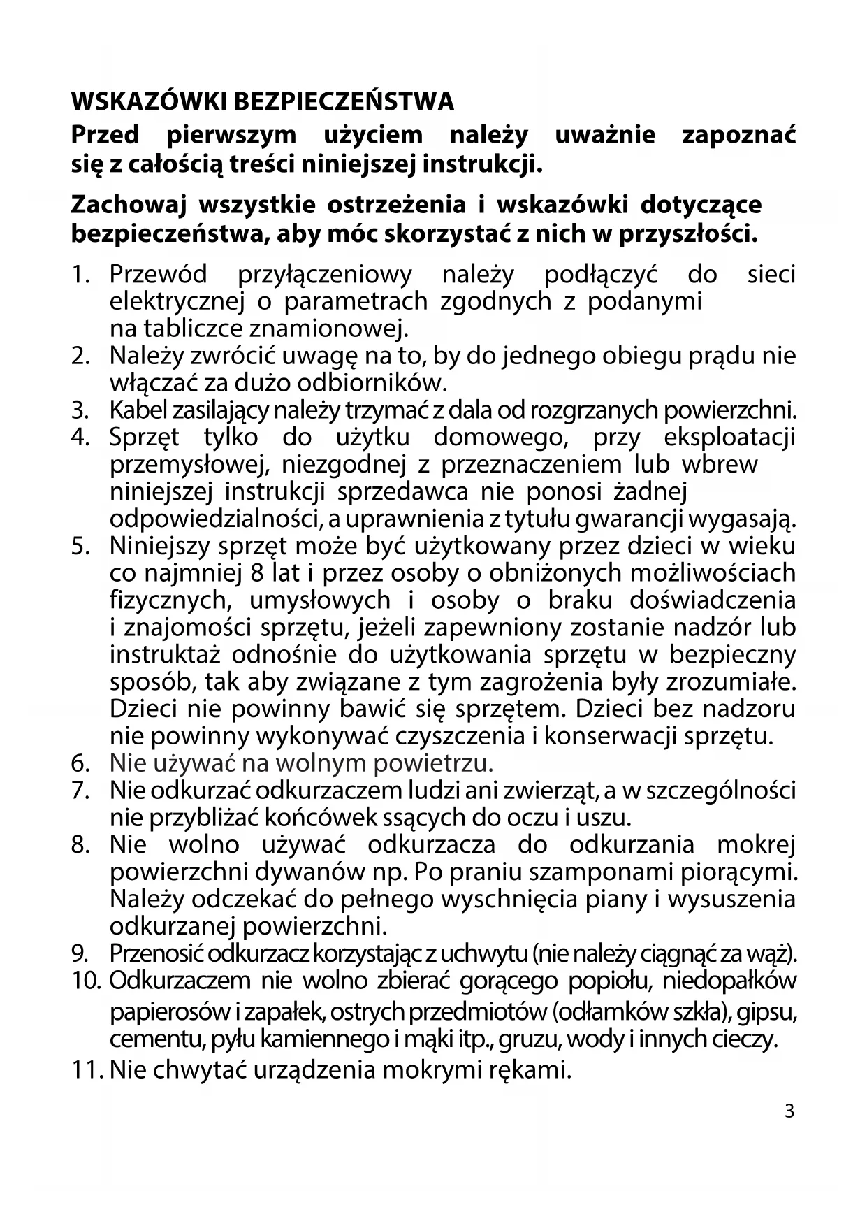 8. Nie wolno używać odkurzacza do odkurzania mokrej