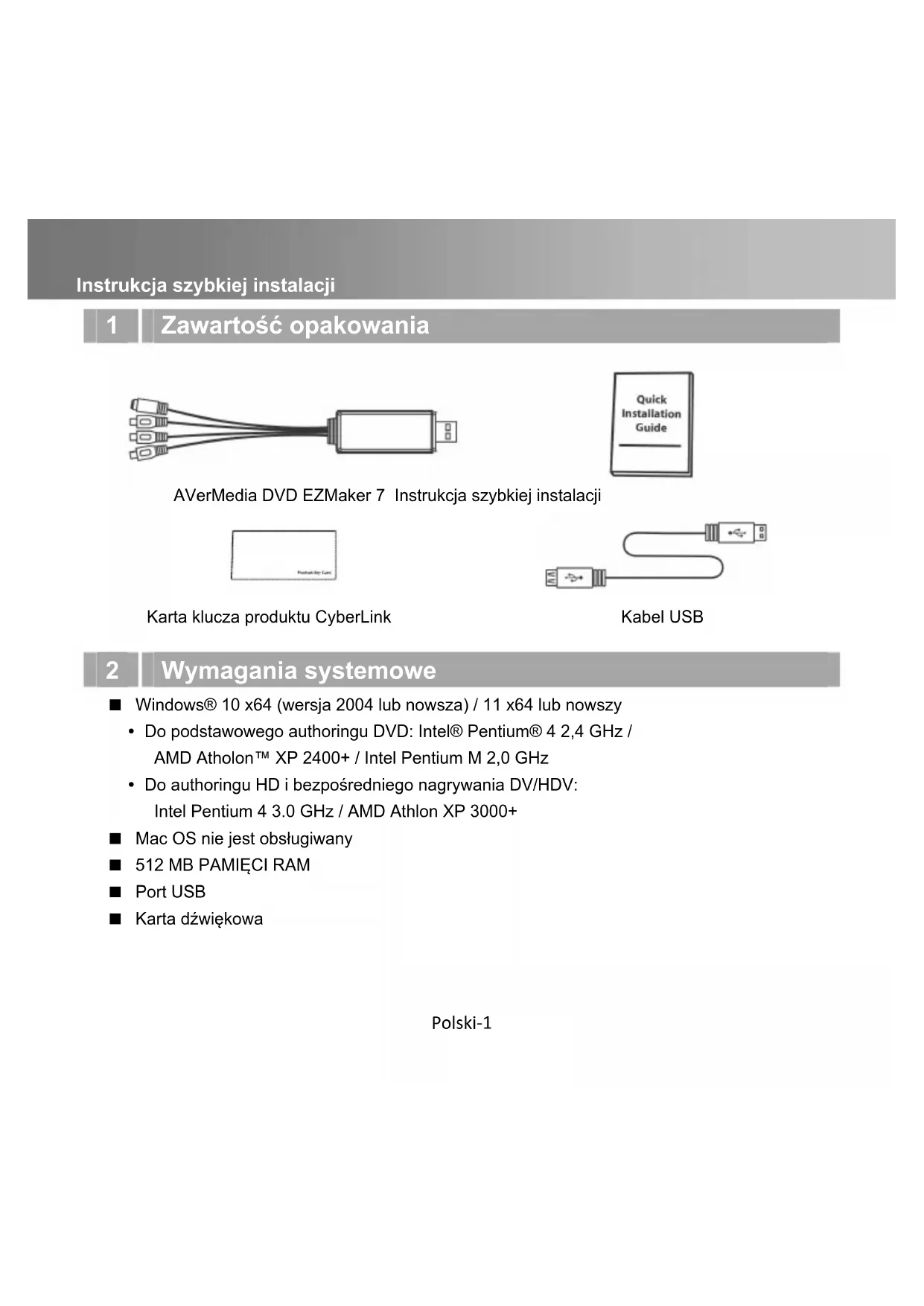 AVerMedia DVD EZMaker 7 Instrukcja szybkiej instalacji