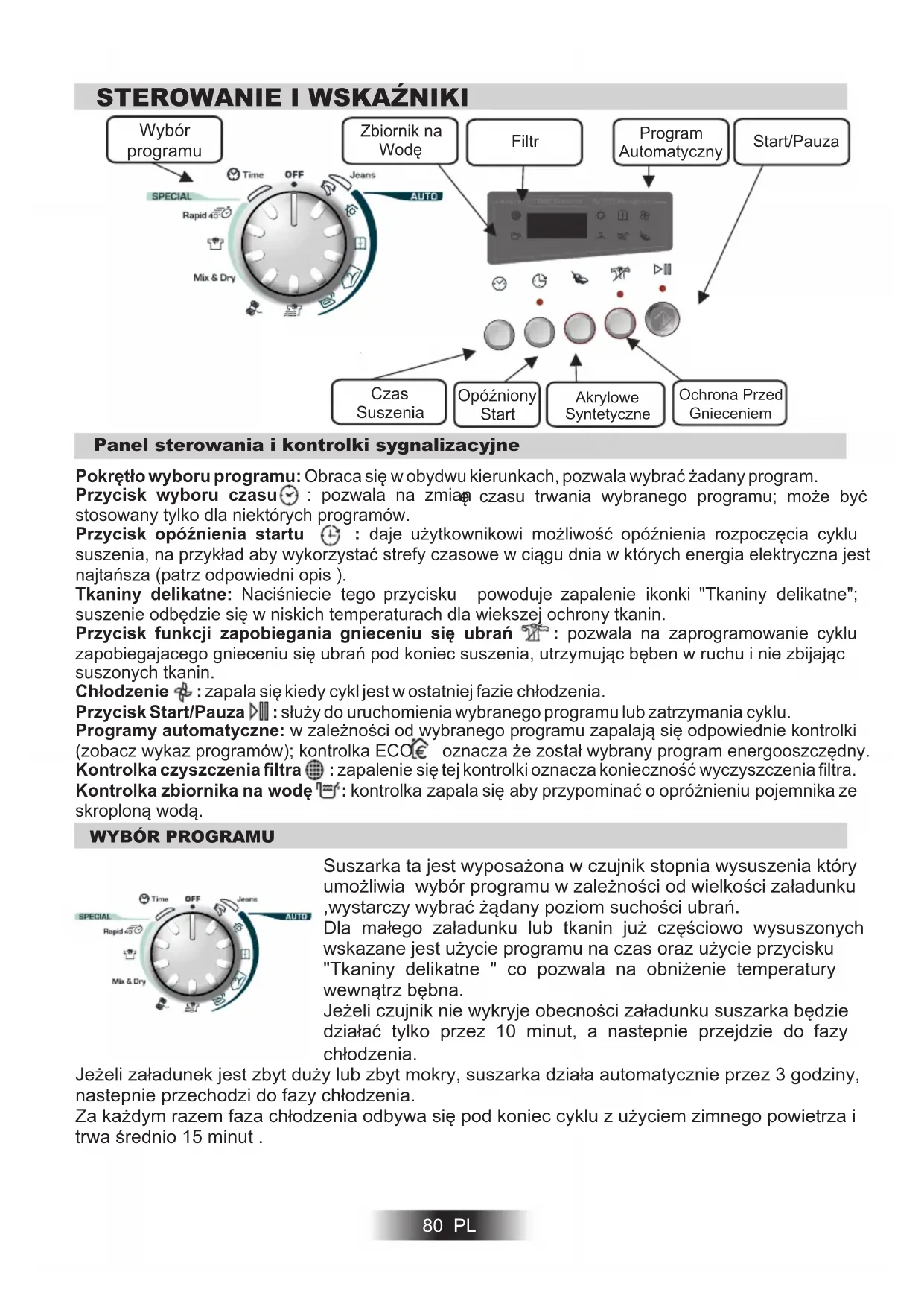 Funkcja Opóźnienia Startu Anulowanie Programu DZIAŁANIE 84 PL Drying Guide Dane Techniczne Technical Specifications Cykl standardowy ( ) ma najlepszą sprawnośc energetyczną i nadaje się najlepiej do suszenia bielizny bawełnianej. Tabela na ostatniej stronie pokazuje przybliżony czas i zużycie energii dla głównych programów suszenia.