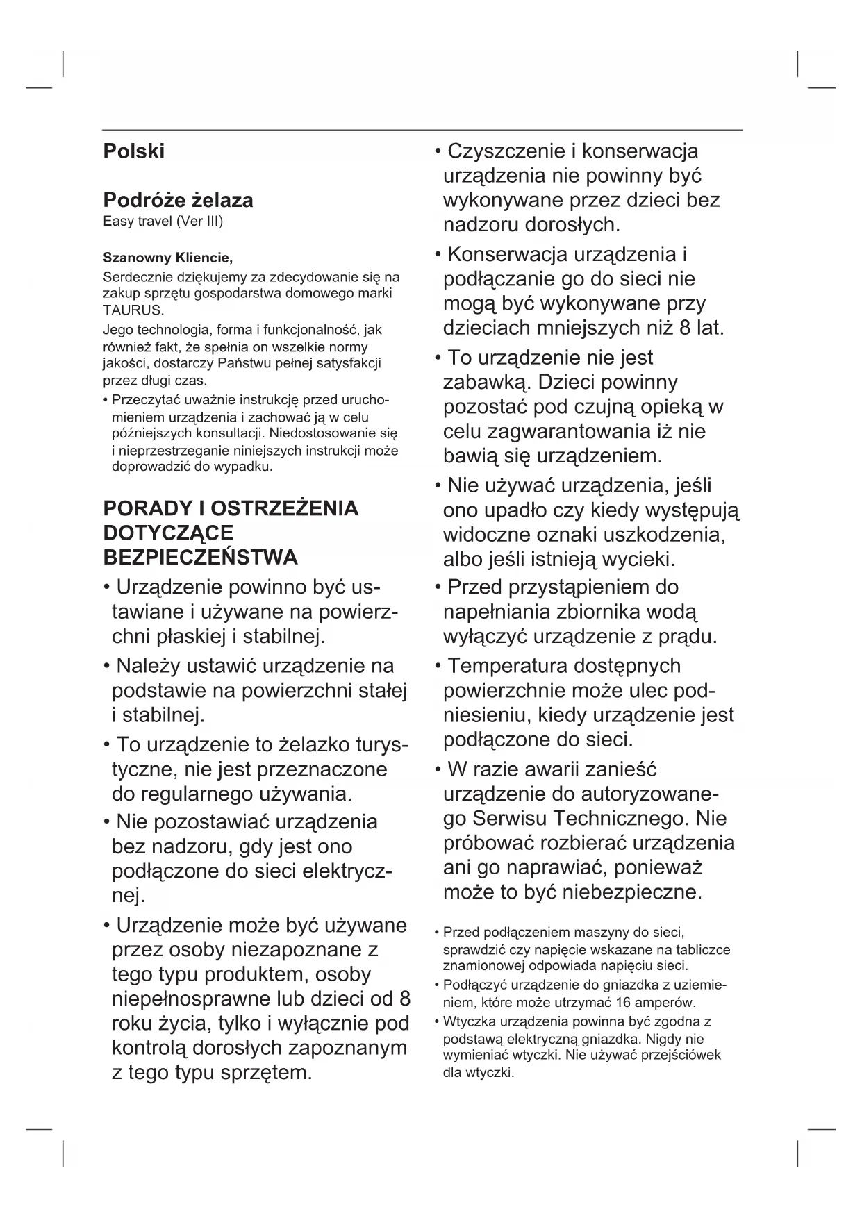 Easy Travel - żelazko TAURUS - Bezpłatna instrukcja obsługi