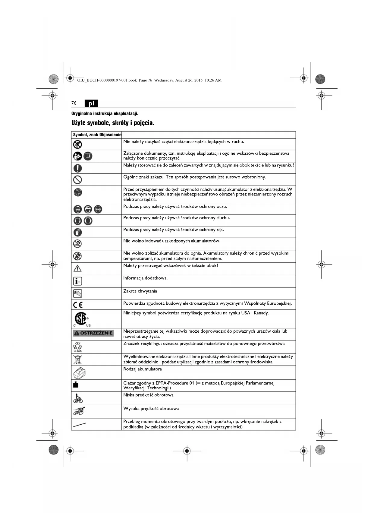 Nie należy używać elektronarzędzia przed uważnym przeczytaniem i zrozumieniem niniejszej Instrukcji eksploatacji, jak również załączonych