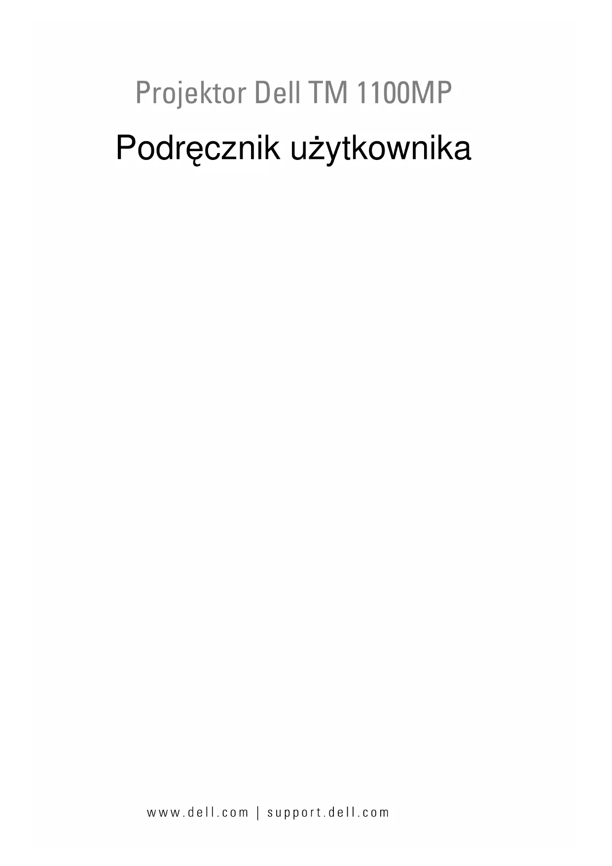Tilkoblingsporter IR-mottaker, 707 Komposittvideokontakt, 707 Lydinngangskontakt, 707 RS232-kontakt, 707 S-videokontakt, 707 USB-kontakt, 707 VGA inn (D-sub), kontakt, 707 VGA ut (skjermsløyfe gjennom), 707764 StikkordregisterModel XXX www.dell.com | support.dell.com Projektor Dell TM 1100MP Podręcznik użytkownikaUwagi, przypomnienia i ostrzeżenia UWAGA: Napis UWAGA wskazuje na ważną informację, która pozwala lepiej wykorzystać posiadany projektor. PRZYPOMNIENIE: Napis PRZYPOMNIENIE wskazuje na informacje o sytuacjach, w których występuje ryzyko uszkodzenia sprzętu lub utraty danych, i sposobach uniknięcia problemu. OSTROŻNIE: Napis OSTROŻNIE wskazuje na informacje o sytuacjach, w których występuje ryzyko uszkodzenia sprzętu, uszkodzenia ciała lub śmierci.