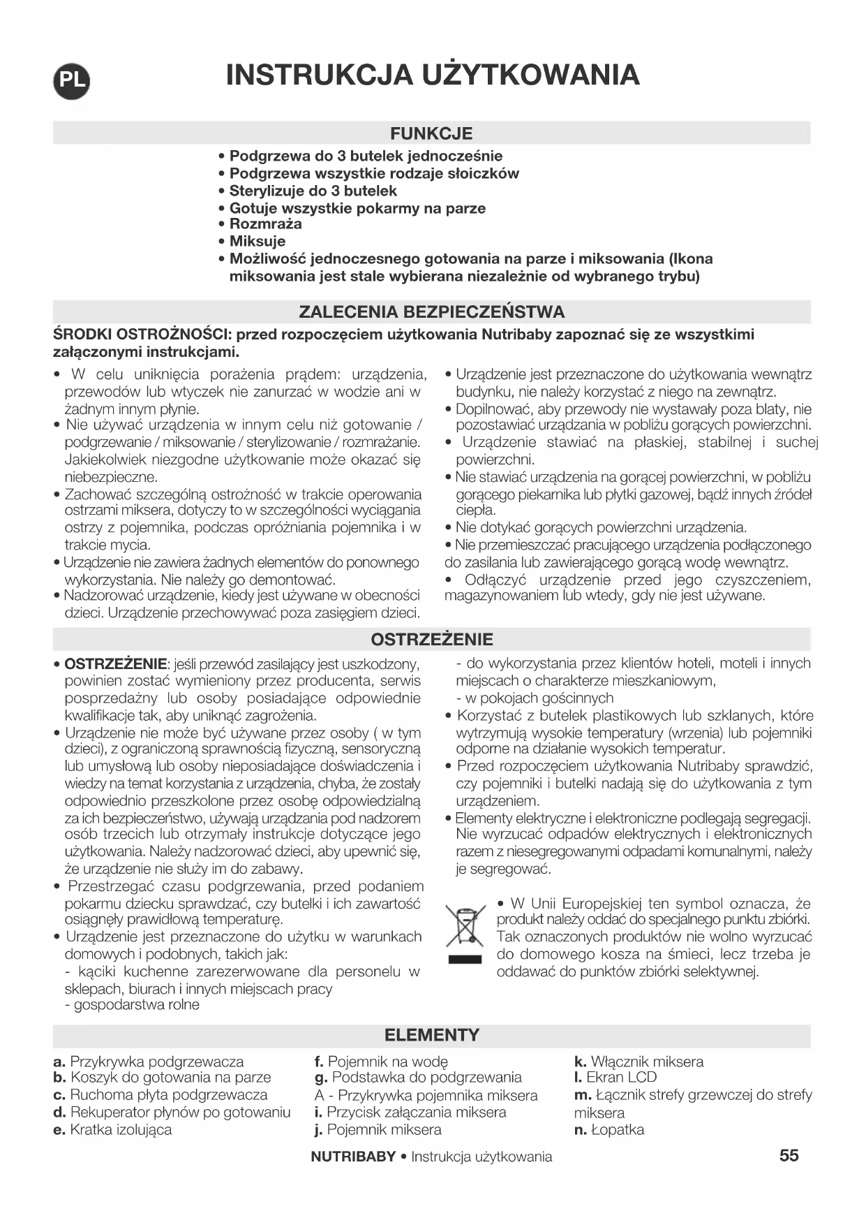 ŚRODKI OSTROŻNOŚCI: przed rozpoczęciem użytkowania Nutribaby zapoznać się ze wszystkimi załączonymi instrukcjami.