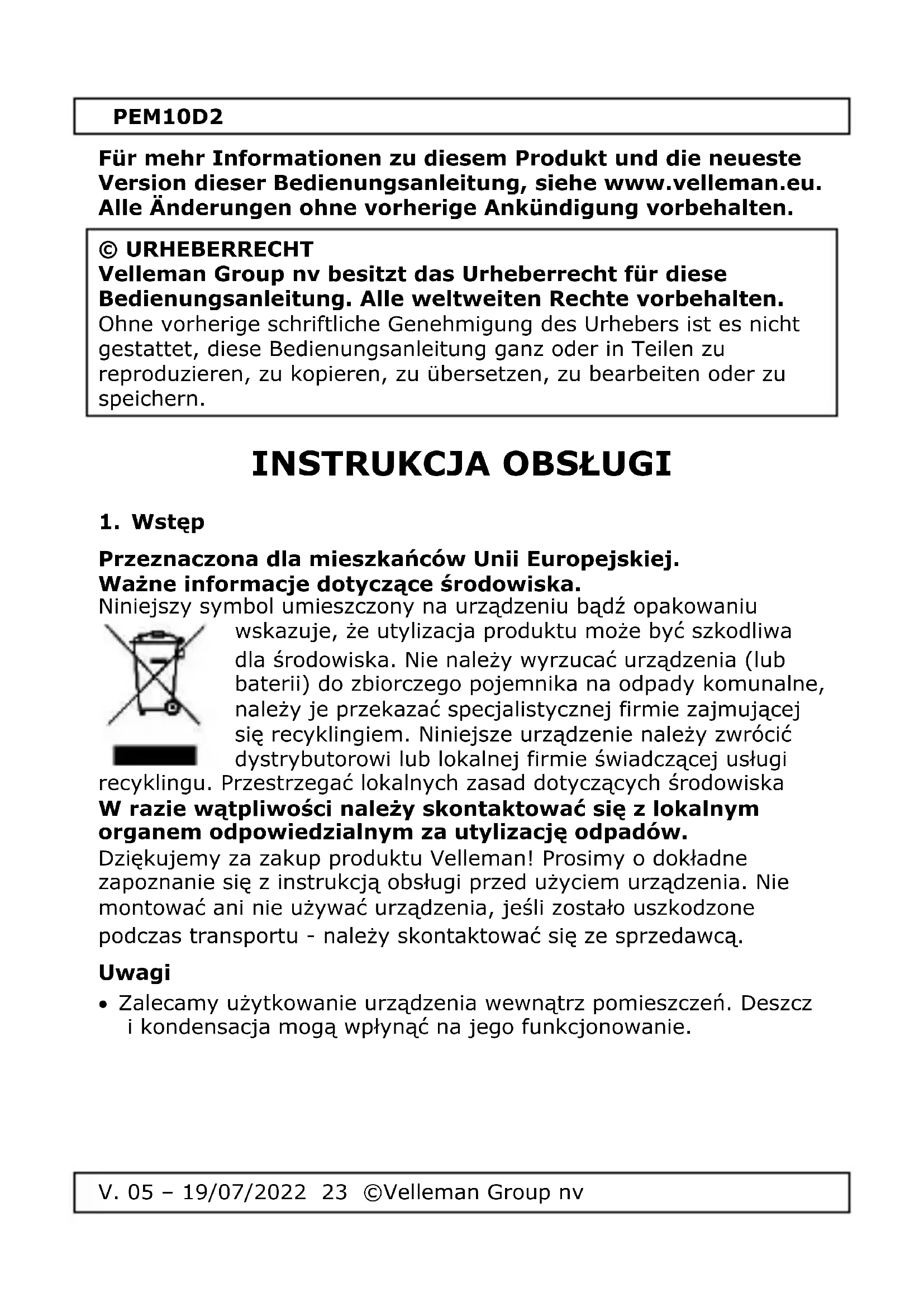 INSTRUKCJA OBSŁUGI PEM10D2 VELLEMAN