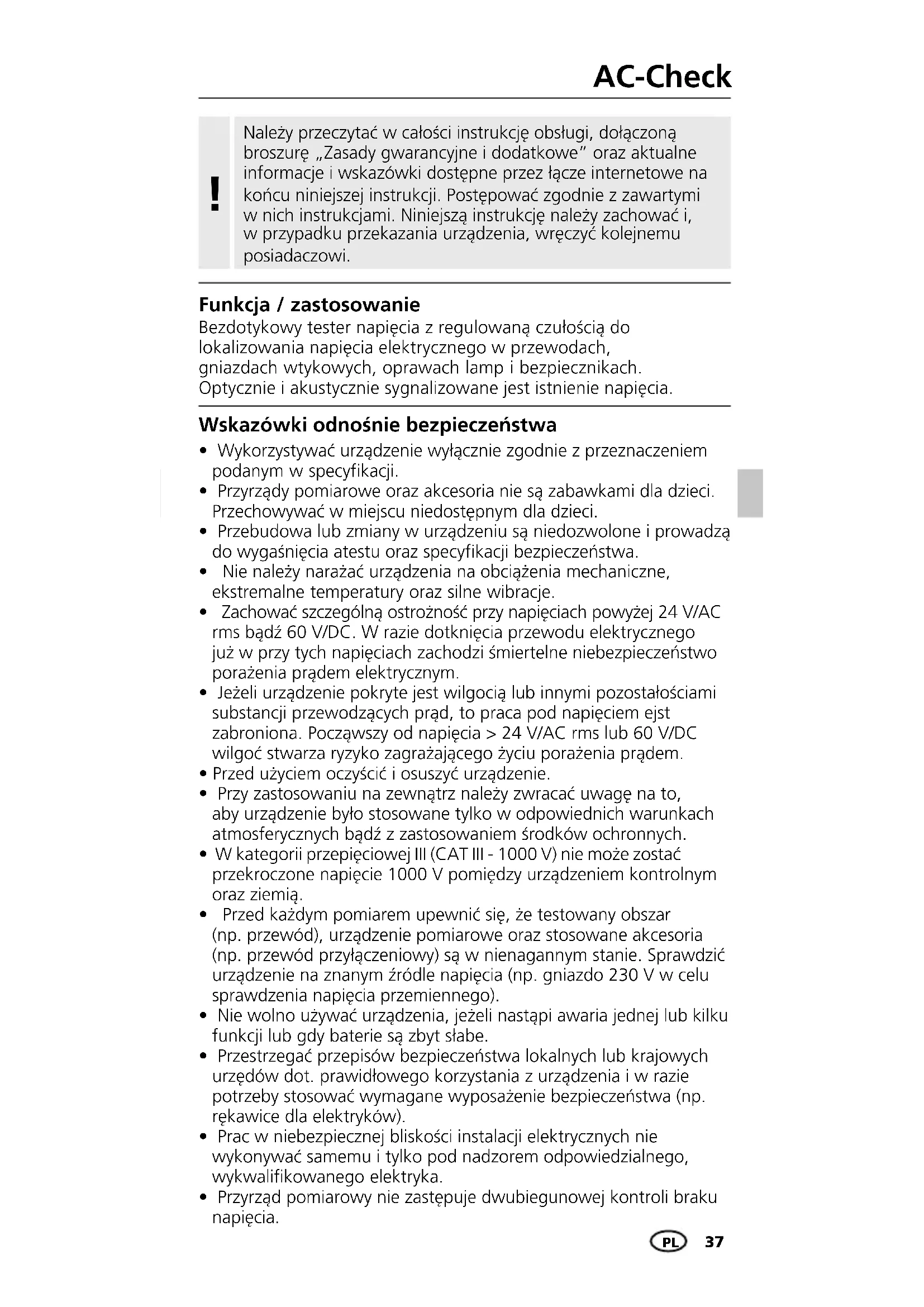 - Przyrząd pomiarowy nie zastępuje dwubiegunowej kontroli braku napięcia.38
