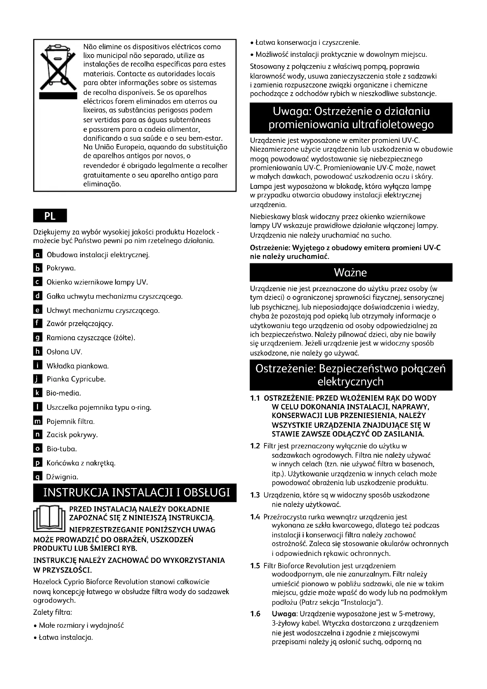 INSTRUKCJA OBSŁUGI Bioforce Revolution 12000 HOZELOCK