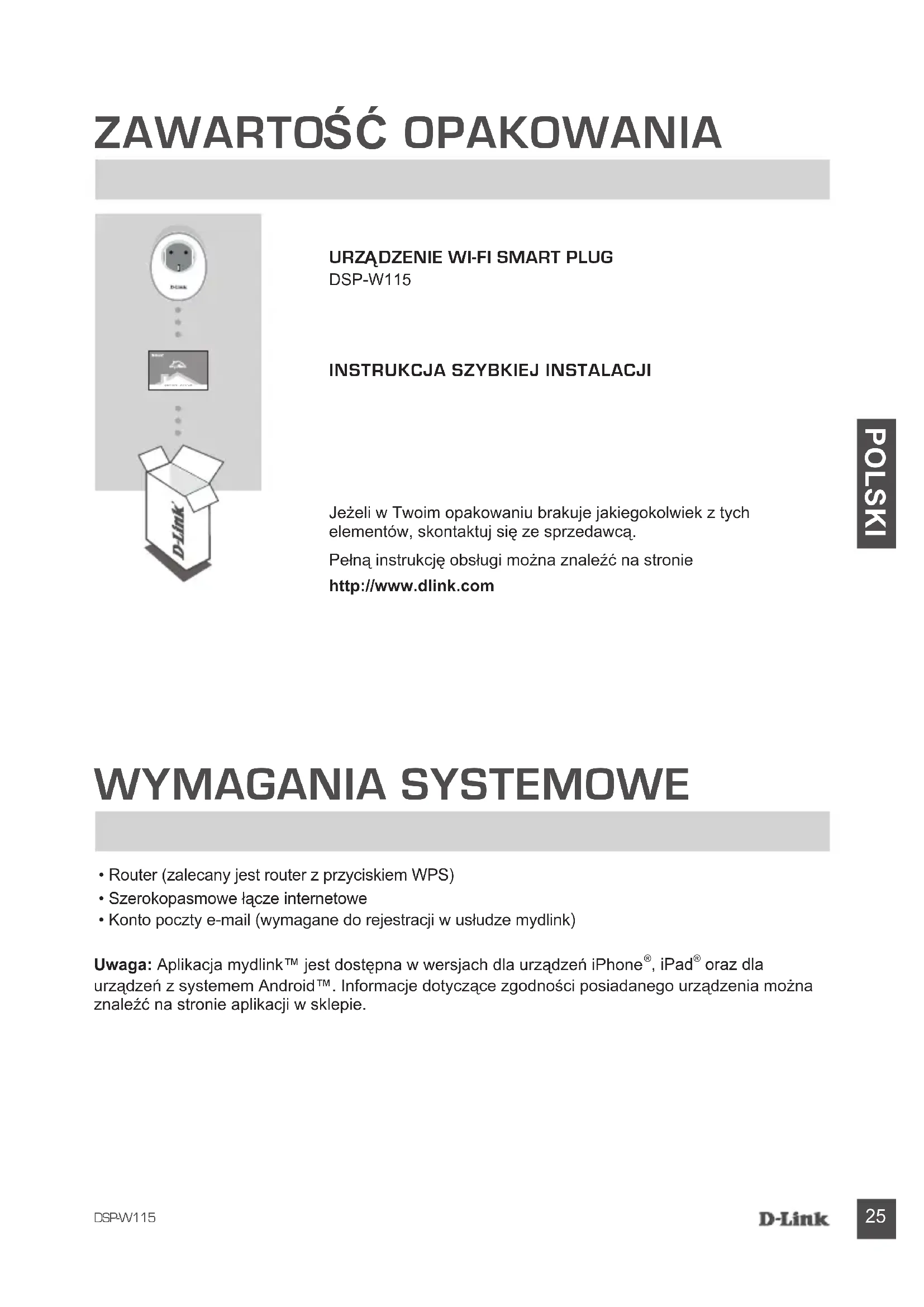 INSTRUKCJA OBSŁUGI DSPW115 D-LINK