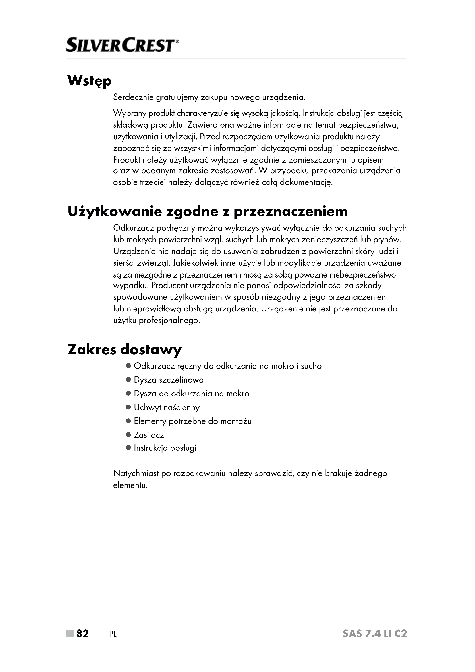 INSTRUKCJA OBSŁUGI SAS 7.4 LI C2 SILVERCREST