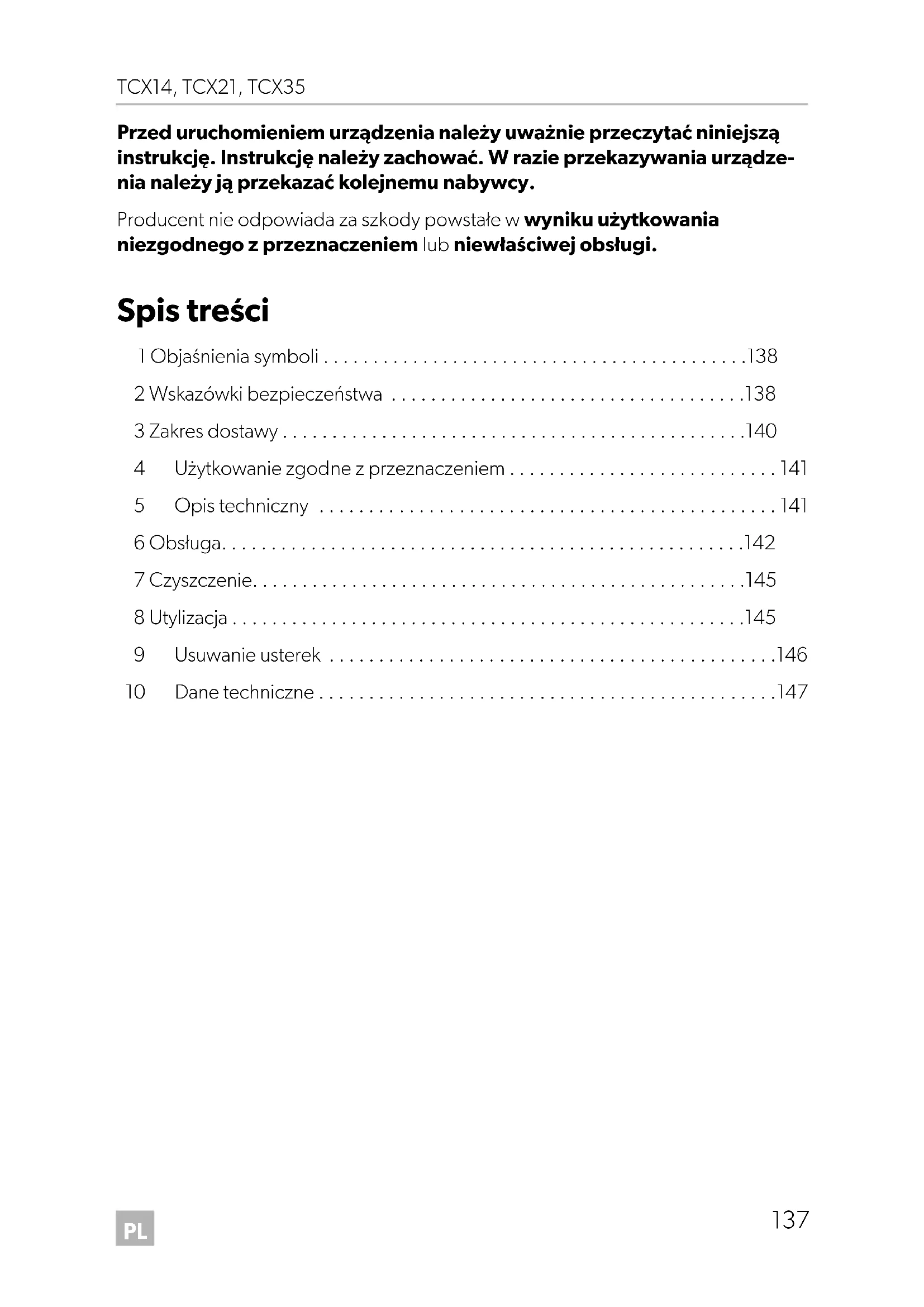 Przed uruchomieniem urządzenia należy uważnie przeczytać niniejszą instrukcję. Instrukcję należy zachować. W razie przekazywania urządzenia należy ją przekazać kolejnemu nabywcy.