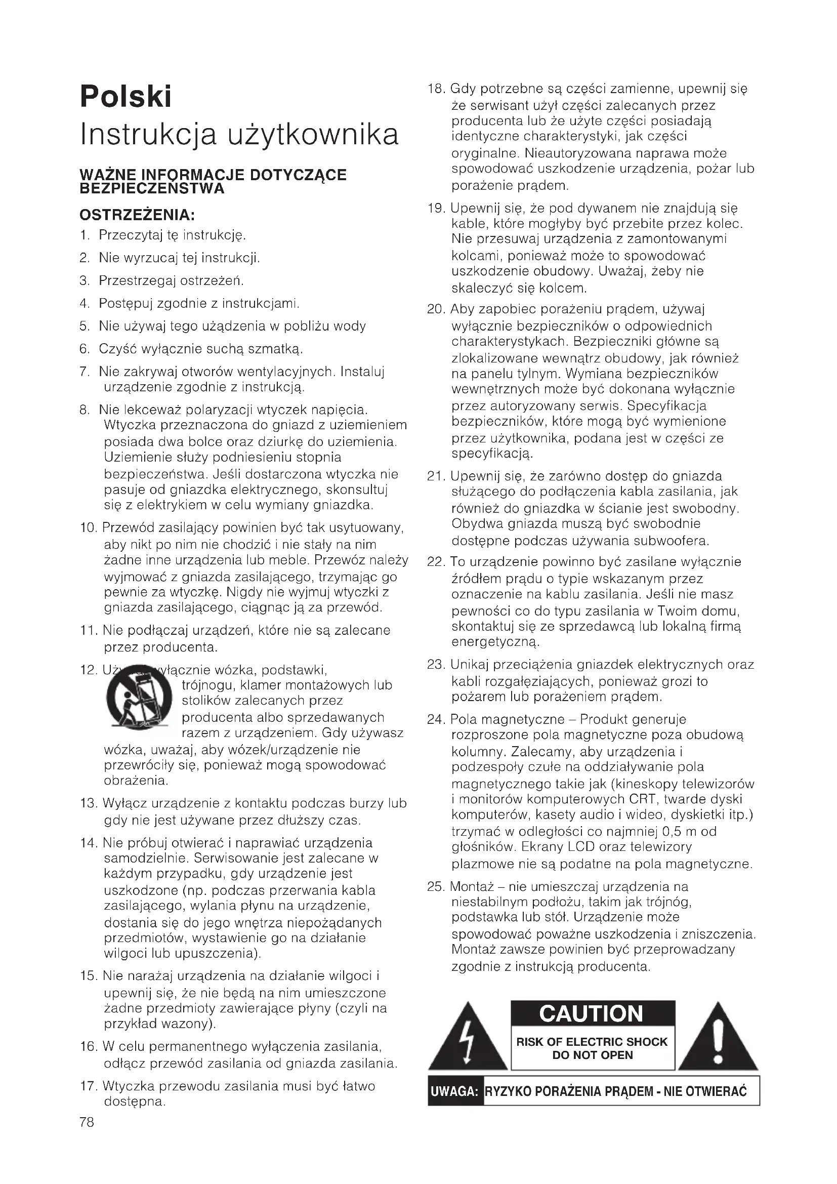 20. Aby zapobiec poraÃeniu prƒdem, uÃywaj