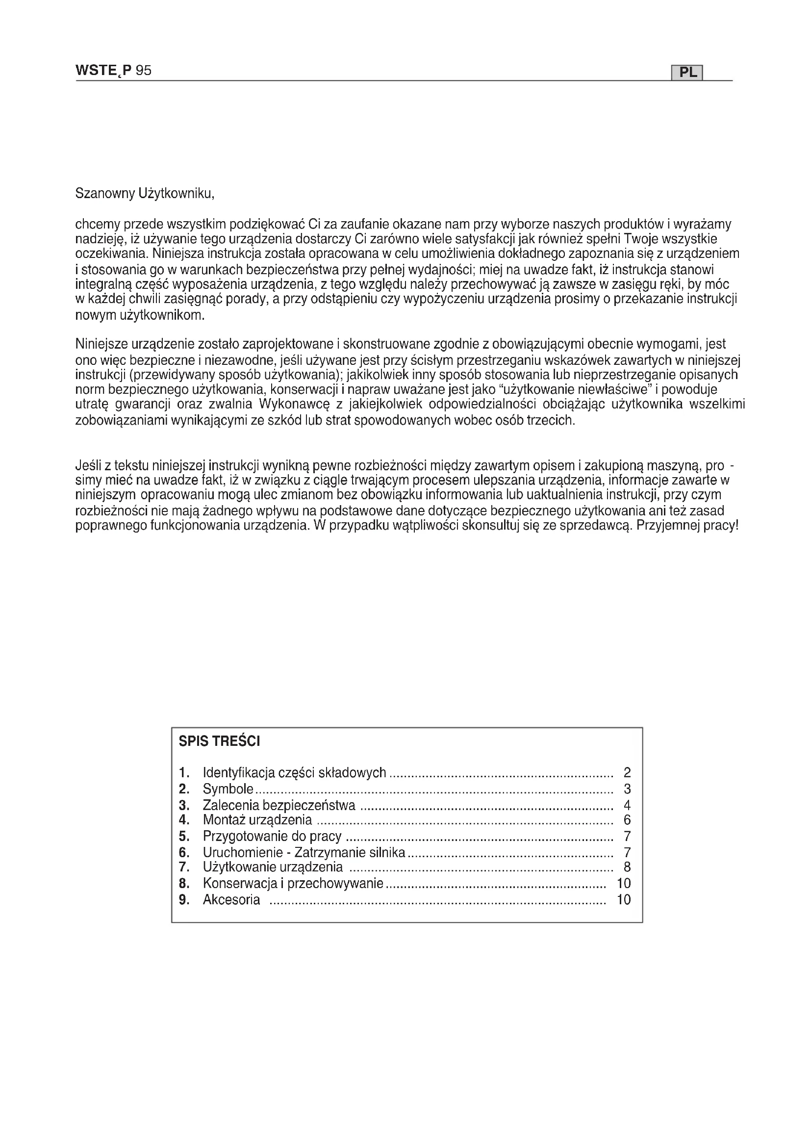 simy mieć na uwadze fakt, iż w związku z ciągle trwającym procesem ulepszania urządzenia, informacje zawarte w niniejszym opracowaniu mogą ulec zmianom bez obowiązku informowania lub uaktualnienia instrukcji, przy czym rozbieżności nie mają żadnego wpływu na podstawowe dane dotyczące bezpiecznego użytkowania ani też zasad poprawnego funkcjonowania urządzenia. W przypadku wątpliwości skonsultuj się ze sprzedawcą. Przyjemnej pracy!