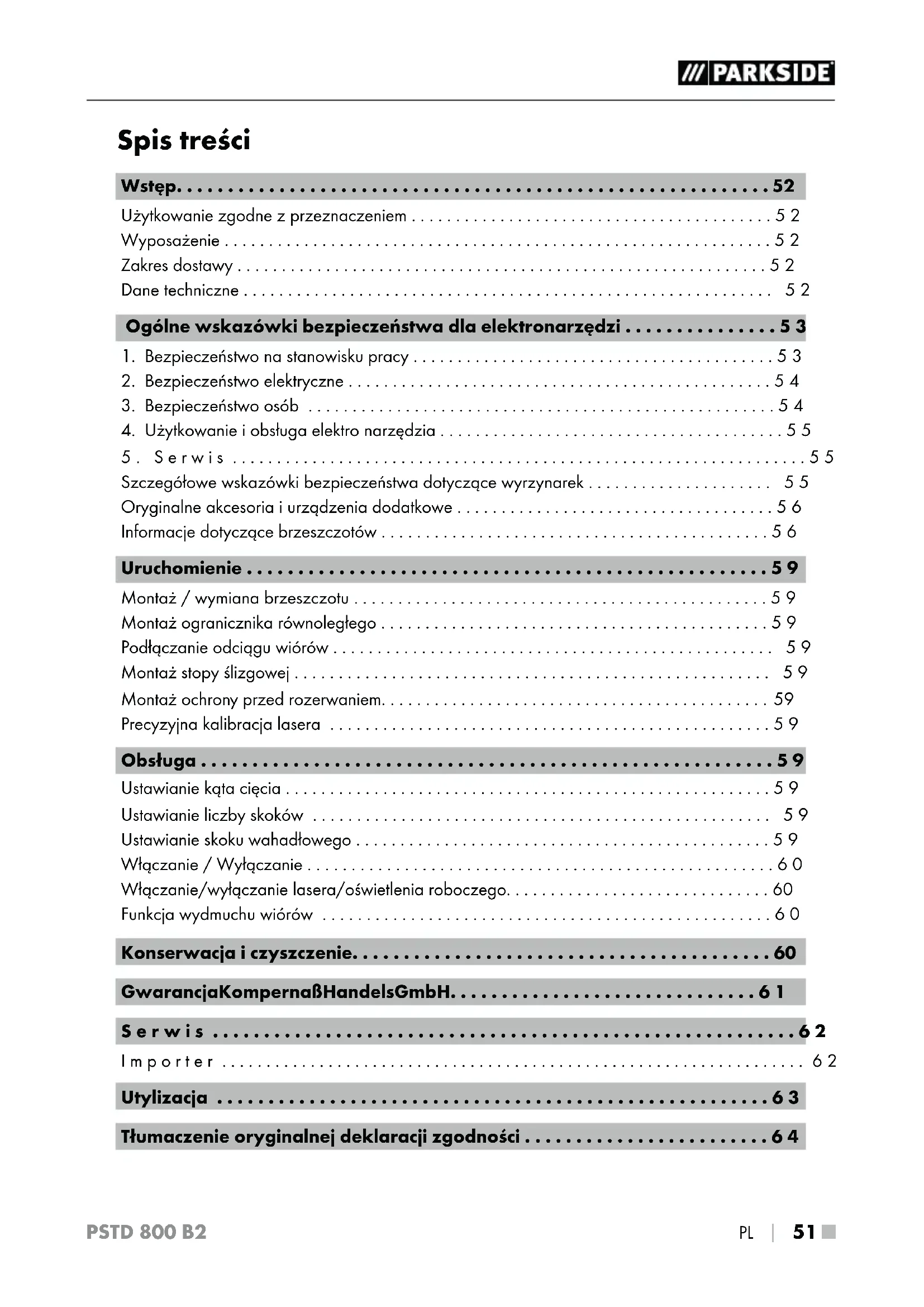 Pobierz instrukcję dla swojego Piła w formacie PDF za darmo! Znajdź swoją instrukcję PSTD 800 B2 - PARKSIDE i weź swoje urządzenie elektroniczne z powrotem w ręce. Na tej stronie opublikowane są wszystkie dokumenty niezbędne do korzystania z urządzenia. PSTD 800 B2 marki PARKSIDE.