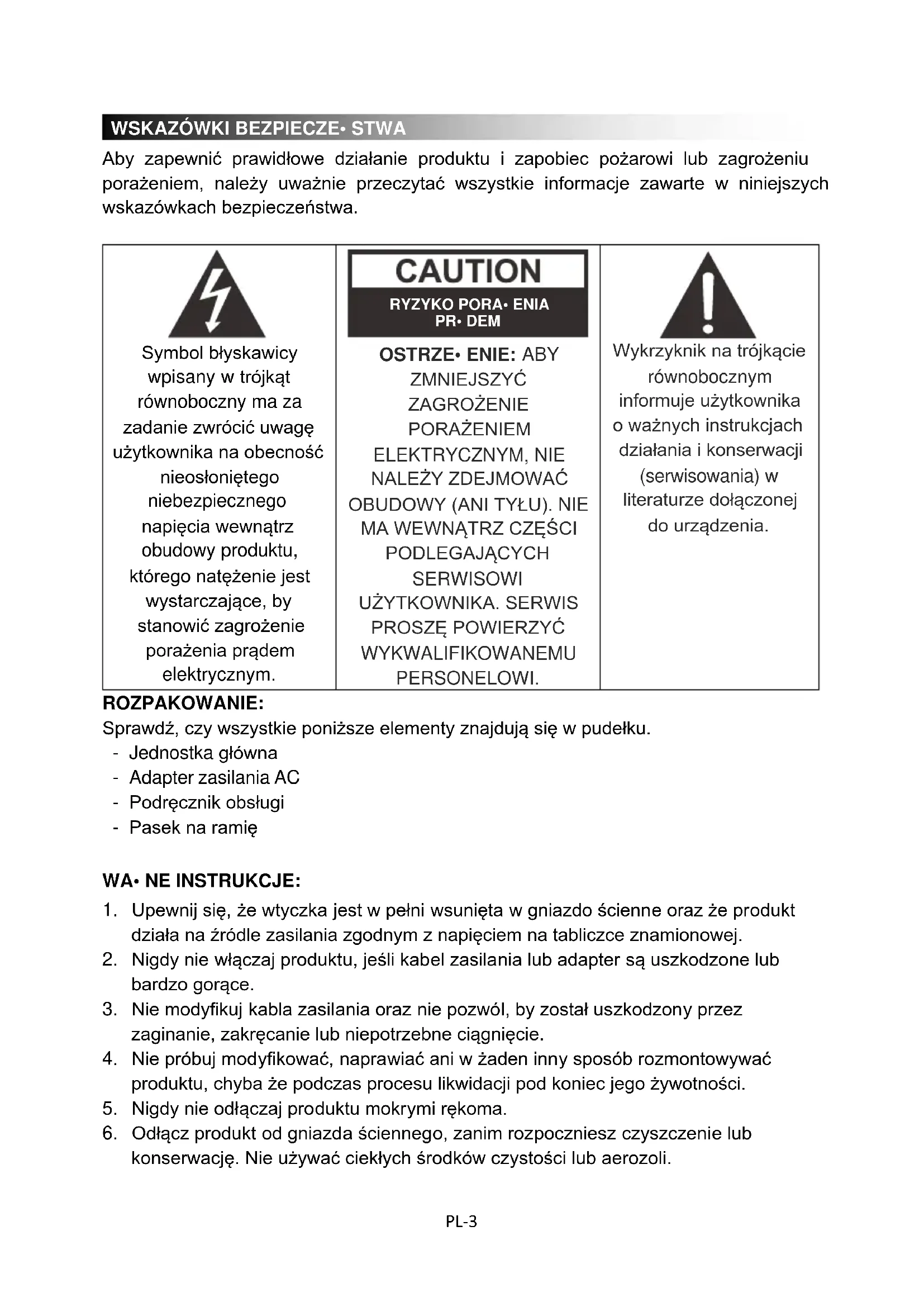 Aby zapewnić prawidłowe działanie produktu i zapobiec pożarowi lub zagrożeniu porażeniem, należy uważnie przeczytać wszystkie informacje zawarte w niniejszych wskazówkach bezpieczeństwa.