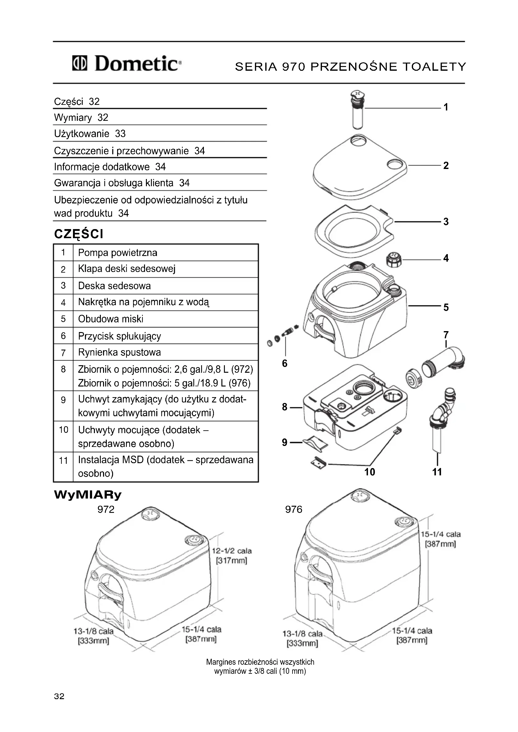 970 - Toalety przenośne DOMETIC - Bezpłatna instrukcja obsługi
