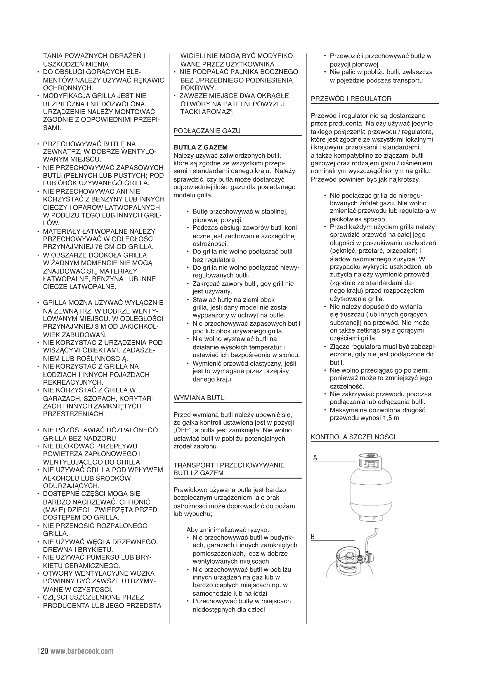 Należy używać zatwierdzonych butli, które są zgodne ze wszystkimi przepi- sami i standardami danego kraju. Należy sprawdzić, czy butla może dostarczyć odpowiedniej ilości gazu dla posiadanego modelu grilla.