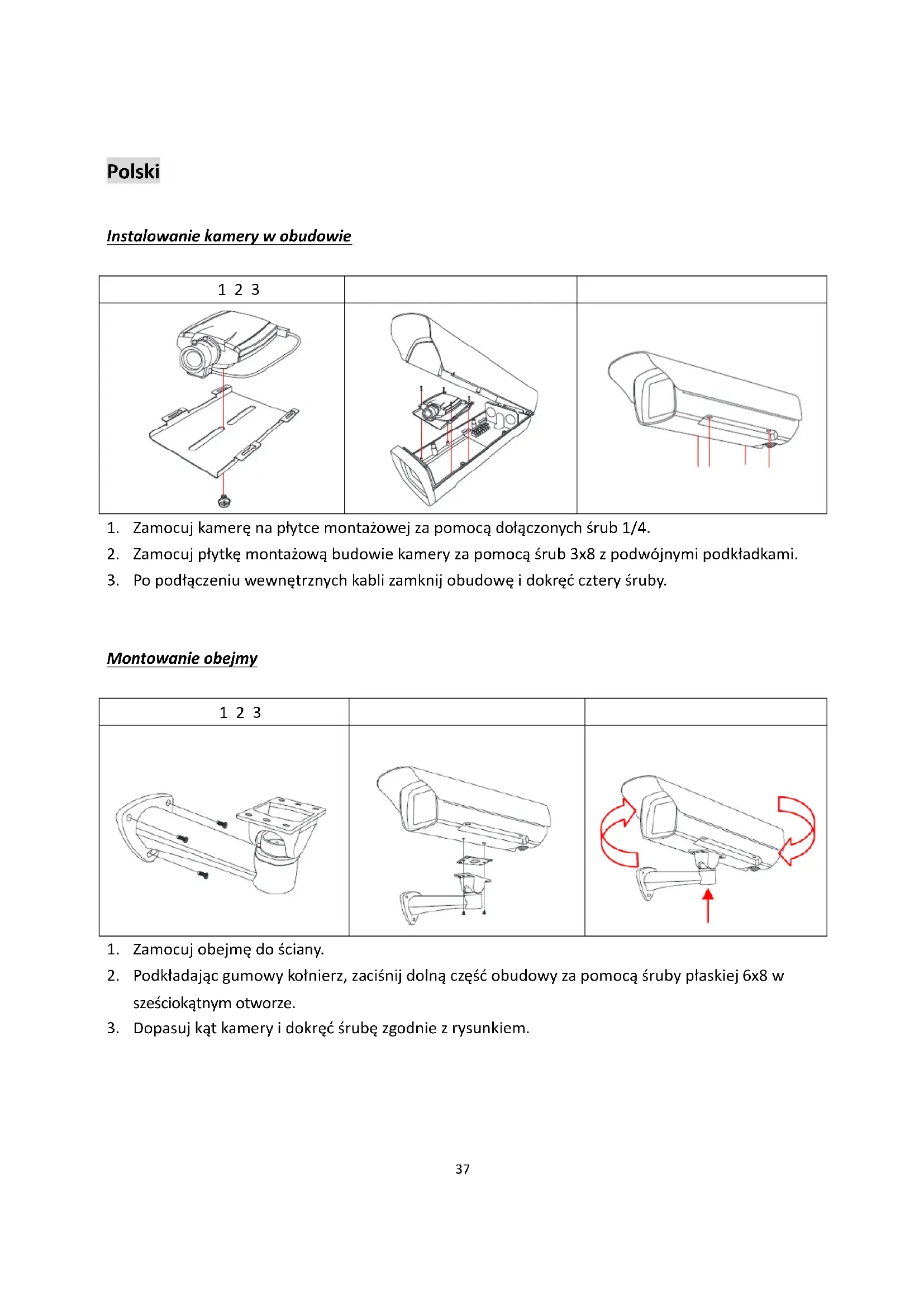 3. Dopasuj kąt kamery i dokręć śrubę zgodnie z rysunkiem.38