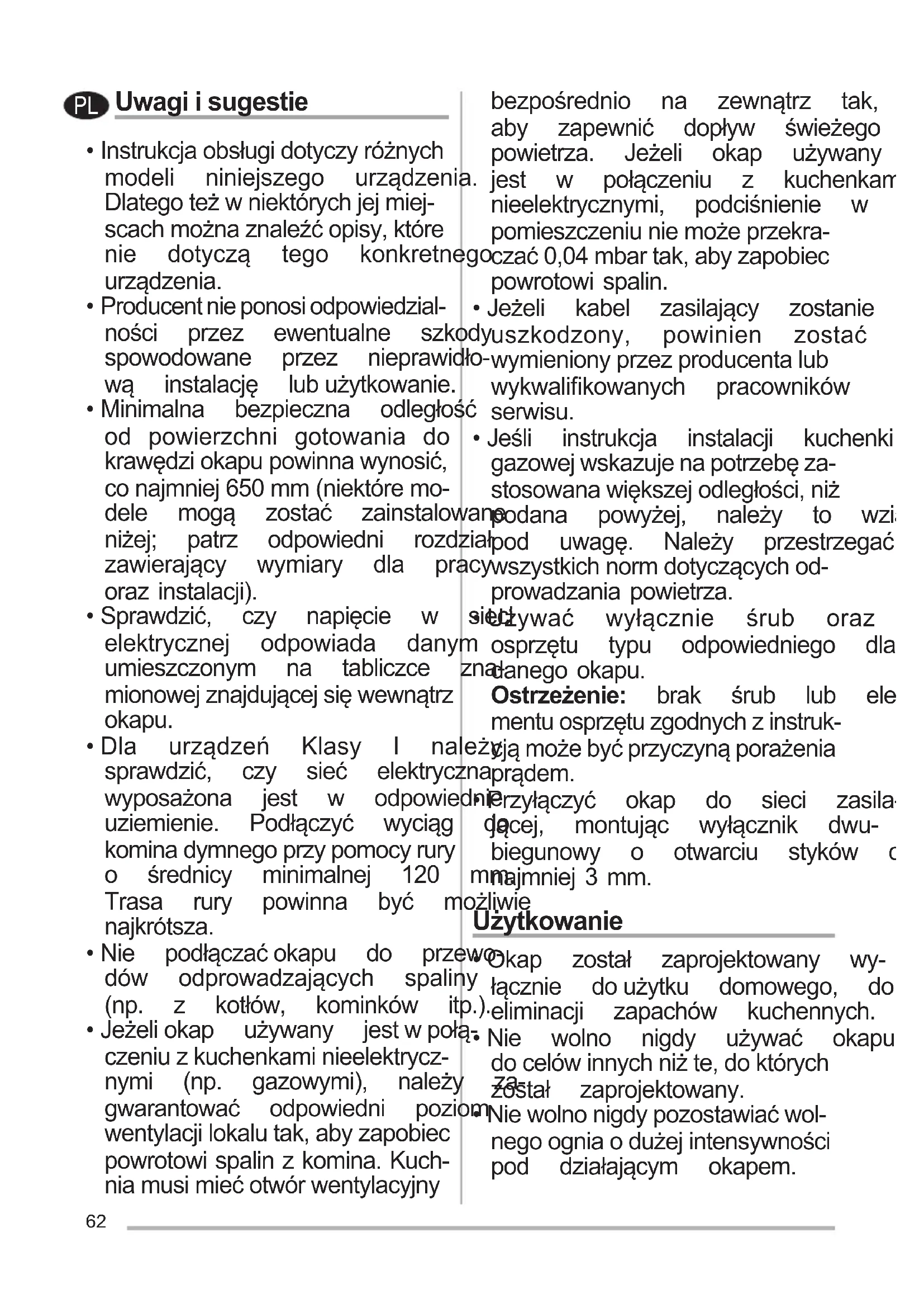 - Niewolnonigdypozostawiaćwol- negoogniaodużejintensywności pod działającym okapem. PL63